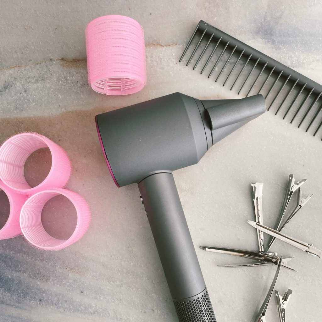 I have fine hair that’s also on the thinner side, so I love blowouts as a way to give my hair extra volume. To test out this 90s style, I started out by washing my hair and letting it air dry for about 20 minutes. To prep my hair before blowdrying, I used my favorite leave-in conditioner from Unite, as well as a heat-protectant and hair oil. I then rough-dried my hair until it was about 85 percent dry.