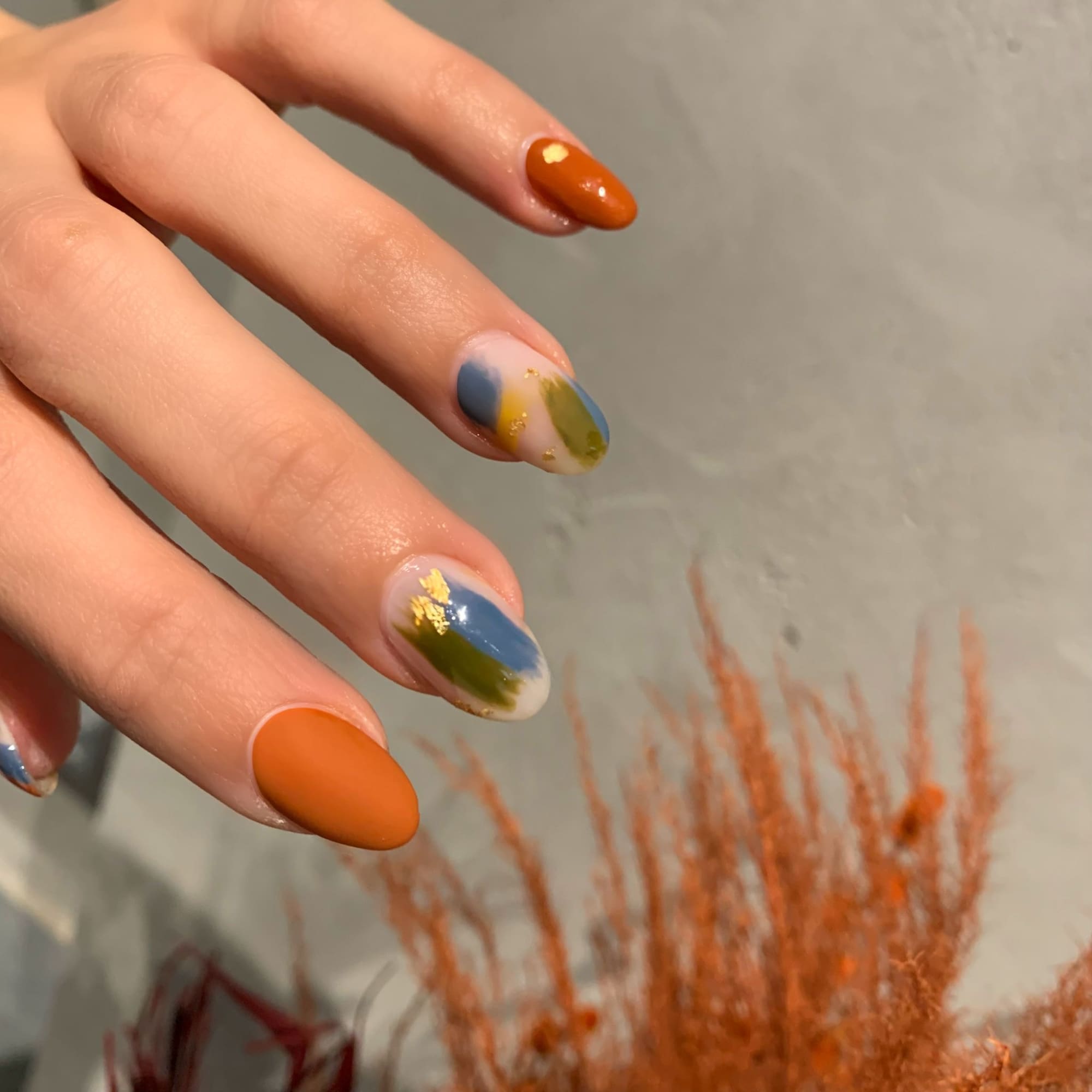 Playing with texture is another great way to switch up your nail art. This stokes design incorporates four shades (Fall, Avante-Garde, Strike a Pose, and Retro) as well as a matte top coat and gold foil – all while in keeping with a minimalistic feel. If you’re tempted to give one of these designs a try at home, the brushstoke technique in this design makes it fun (and a little easier) to re-create.