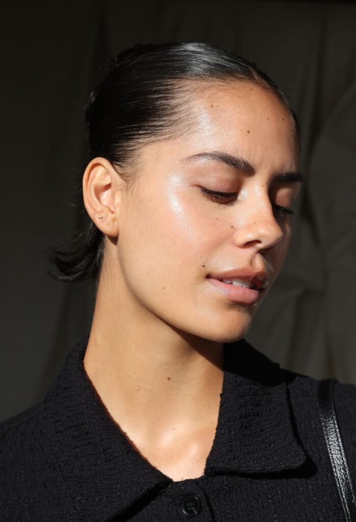 The ‘no makeup makeup’ trend is all about showcasing skin health, says Priscilla Hajiantoni, founder of Bangn Body. “For the runway, it is also perfect to have models channel their inner beauty and show off their own glow,” she says.