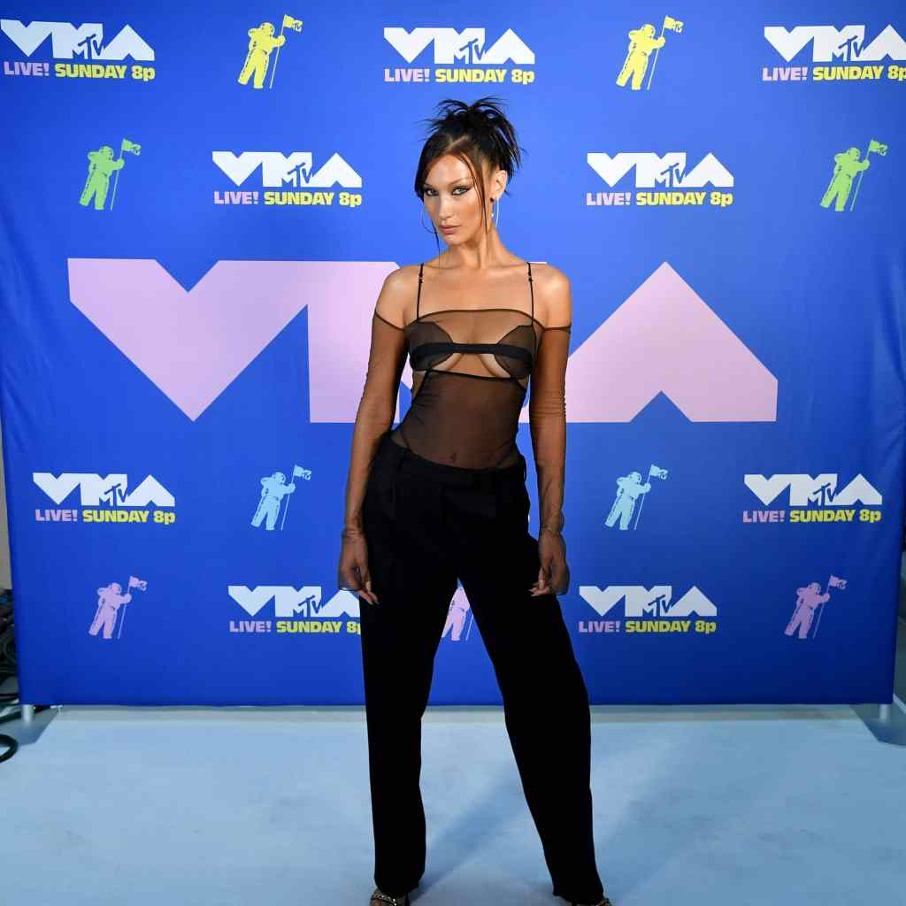Bella Hadid made an appearance at the 2020 Video Music Awards on Sunday night, and her look almost made us forget what year it was. The model presented the Tricon Award to Lady Gaga at the award show, where she showed up wearing her hair in a ’90s-inspired spiky updo complete with two-strand bangs and large silver hoop earrings.