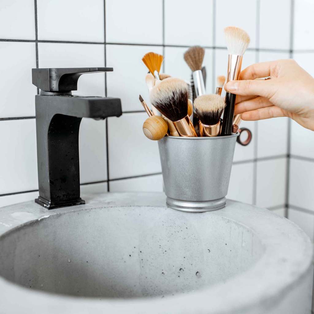 Cleaning your makeup tools is a boring but important chore we all must complete regularly. Many dermatologists advise that brushes and sponges should be cleaned once a week to keep them free of germs, dirt and oil. While this might feel like a lot, it’s the best practice to keep from spreading bacteria and the like across your face repeatedly.