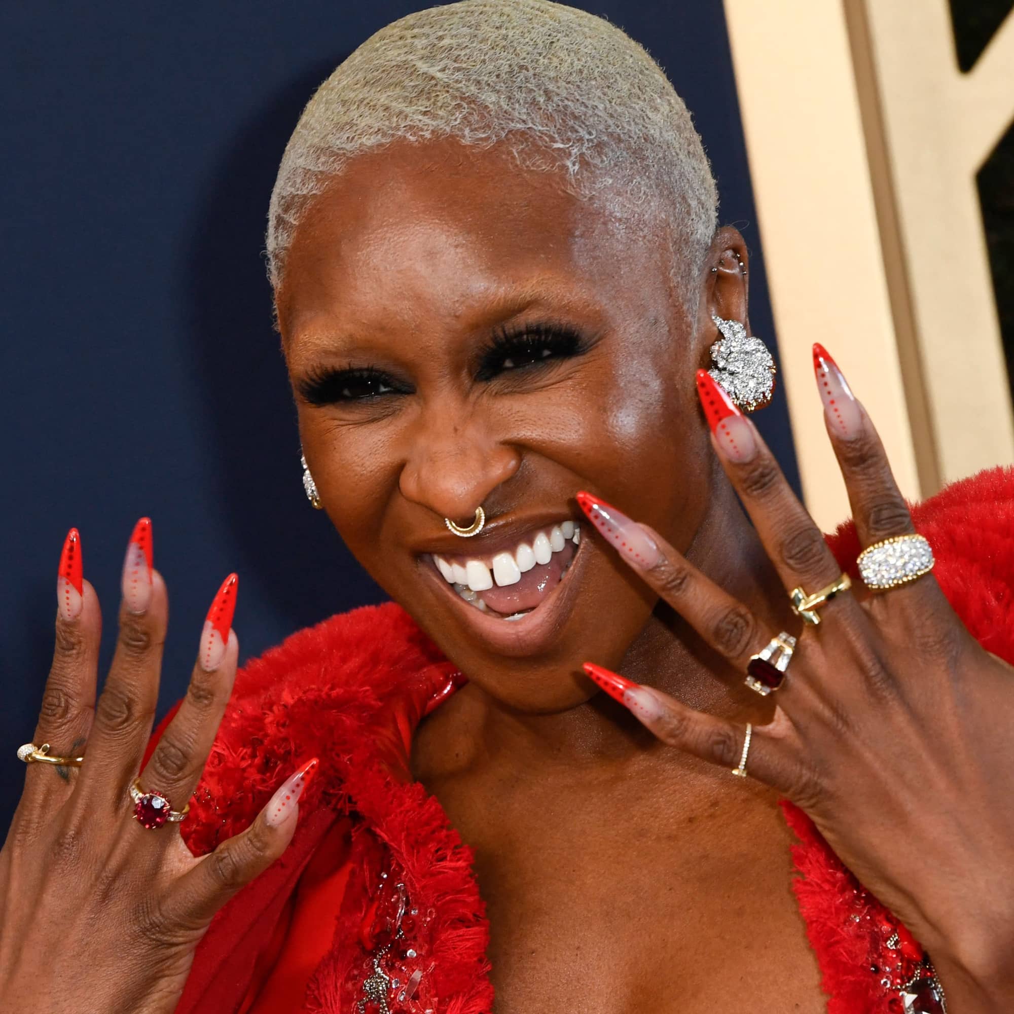 The best glam looks include, but aren’t limited to matching outfit/hair accessories, bubble ponytails, and lots of french manicures. For nails, Laverne Cox’s wore the crystal french manicure trend with her neutral embellished tips while Cynthia Erivo rocked a red french manicure with dots down the centre. In the hair category, Poppy Liu’s served major hair inspiration with her trendy bubble ponytail and curtain bangs combo. And, of course, the cast members of your favourite shows like “Squid Game” and “House of Gucci” shined on the red carpet with looks that deserve awards of their own.