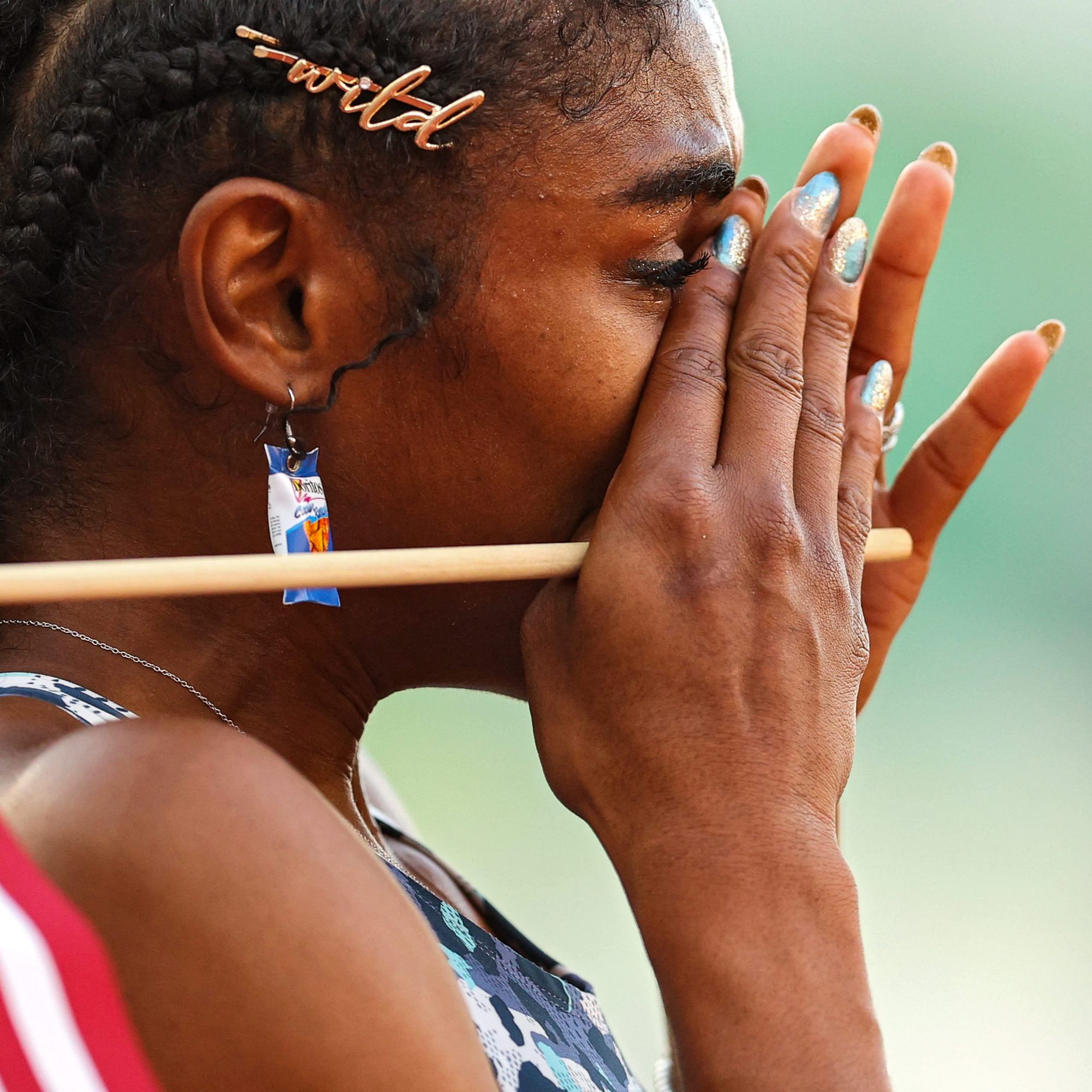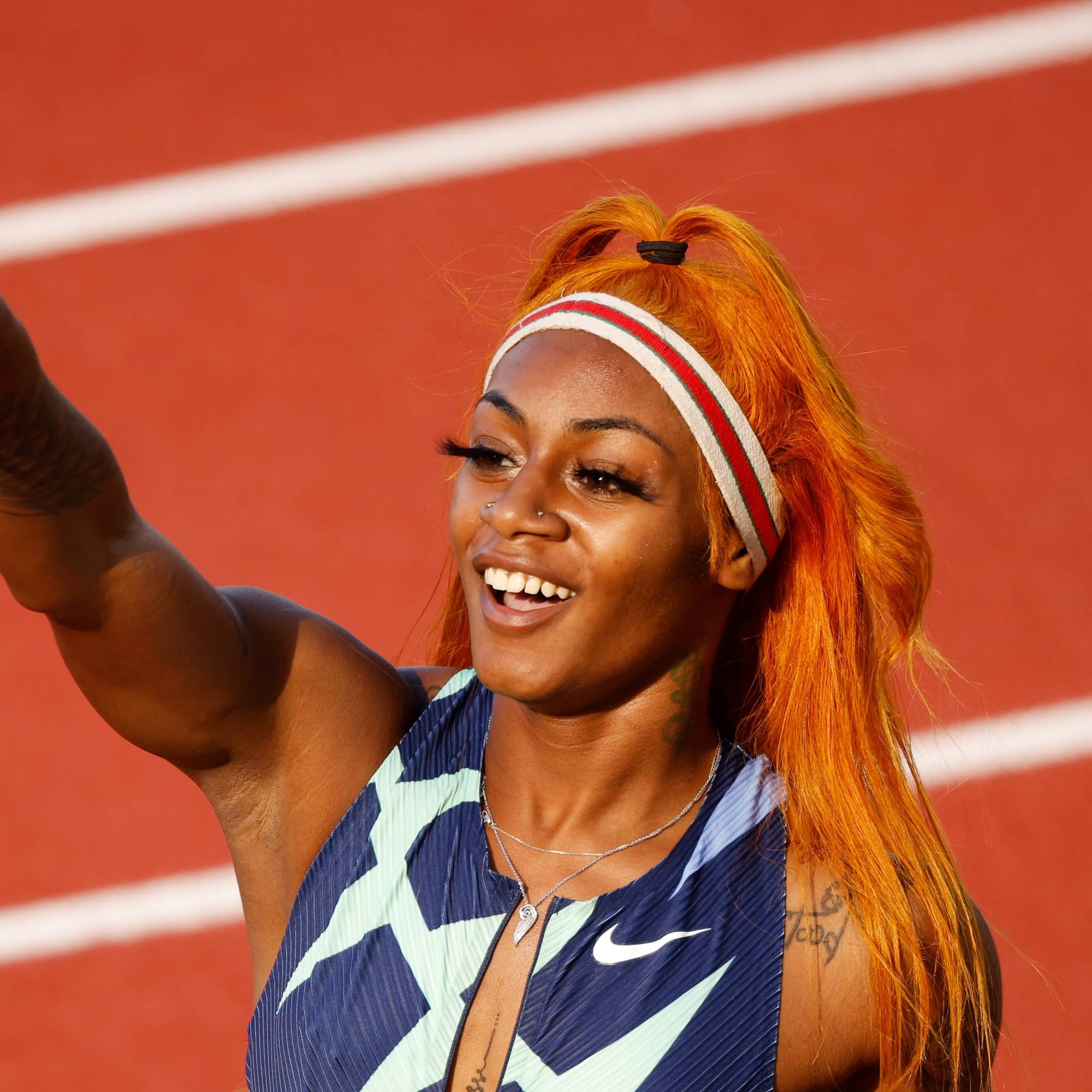Ogbevoen has even felt apprehensive about taking risks with her own hair, but she was happy to see the athletes at this year’s Olympic Trials. “I was scared to get colored hair, but to be an Olympian coming up with orange hair, long acrylics, Dorito earrings, and green hair, [is] like, ‘Yes, finally, just show up as you are.'”