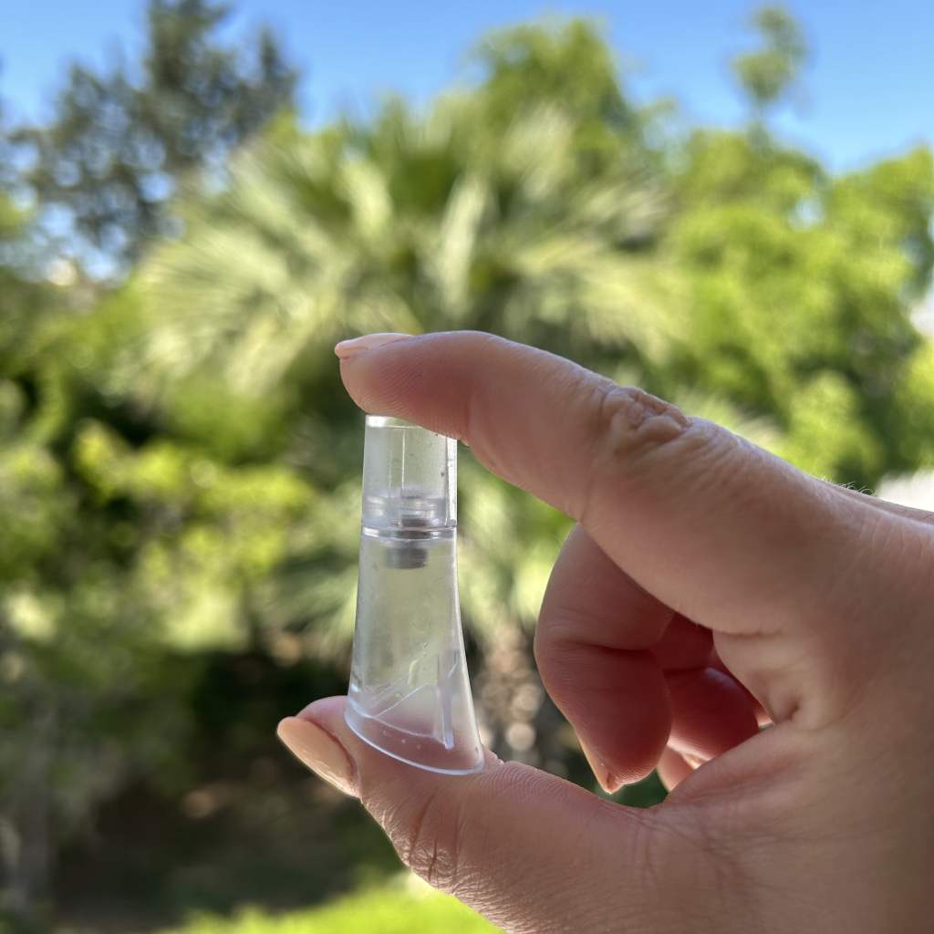 The Celf dermal head is an around five cm by one cm, so when I say it can fit into any hand luggage I mean it. It is so small it is easy to loose, quite a contrast to most beauty tools, which are not only bulky but tend to need chargers and adaptors. It screws on to the top of electric toothbrush, the same as any other toothbrush head and turns on with the power button. It is a needle-free microneedling device, which means it makes little marks on the skin encouraging the skin to repair itself.