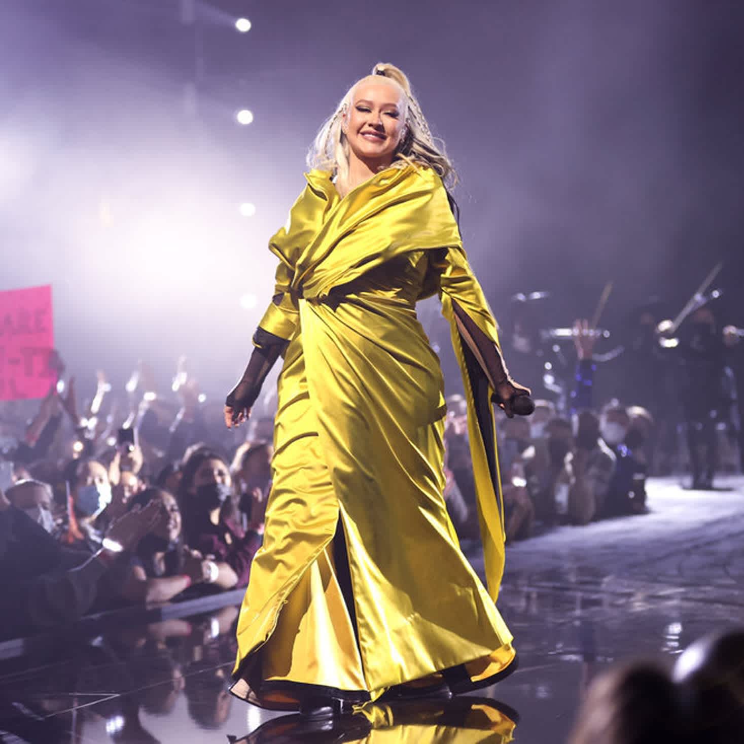 Amid a resurgence in all sorts of 2000s trends, Christina Aguilera’s streaky skunk highlights have made their return. The pop legend recently performed a medley of her greatest hits at the 2021 People’s Choice Awards, where she was also awarded with the first-ever music icon award. For the occasion, Aguilera brought back her Stripped-era hair colour: bright blonde with black extensions sprinkled throughout.