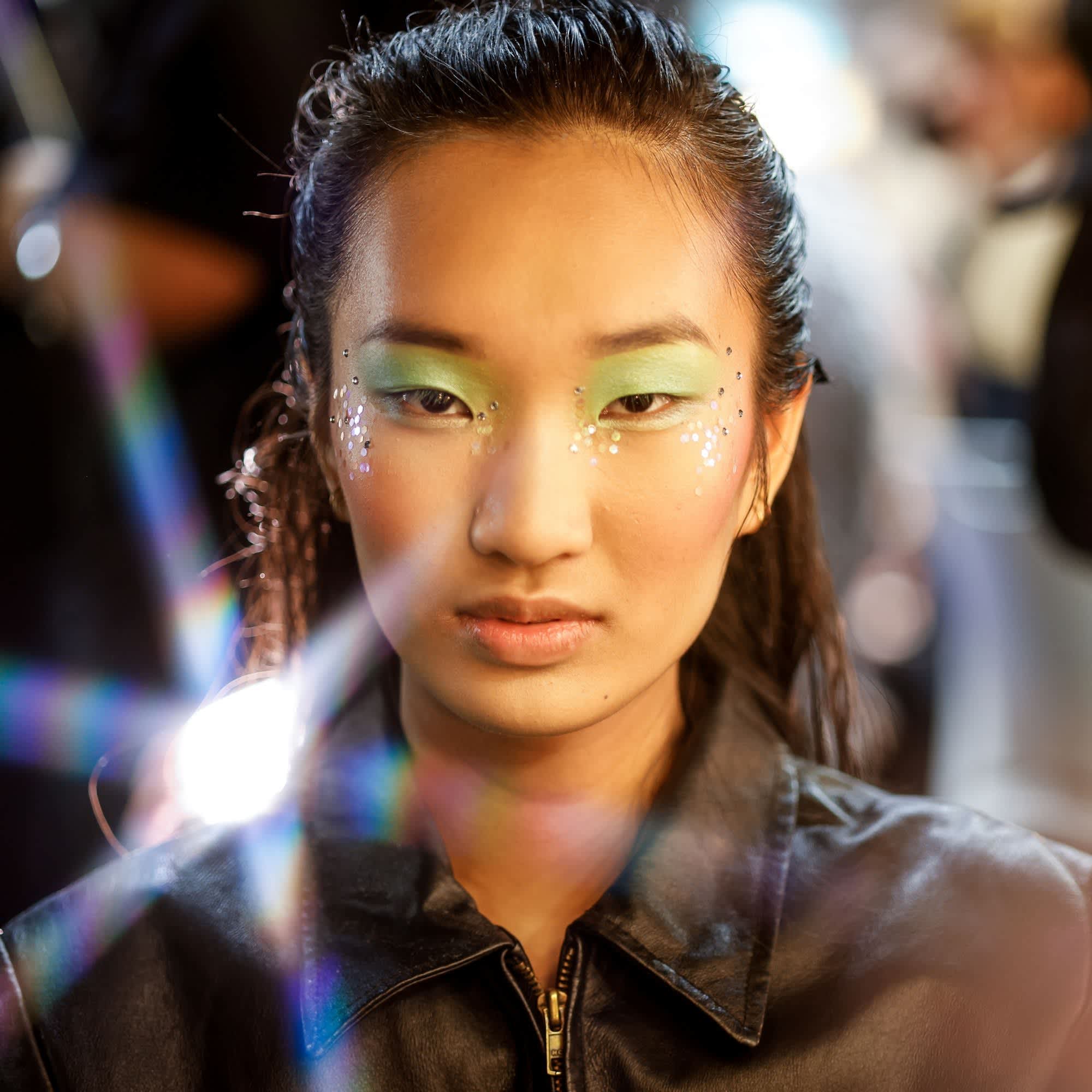 While the clothing was a sight to behold, the beauty looks at the Romance Was Born show was also a highlight. Models’ faces were painted with whimsical colours, with shades of pink, green and blue washed across the eyes and statement blush sitting along the cheekbones.