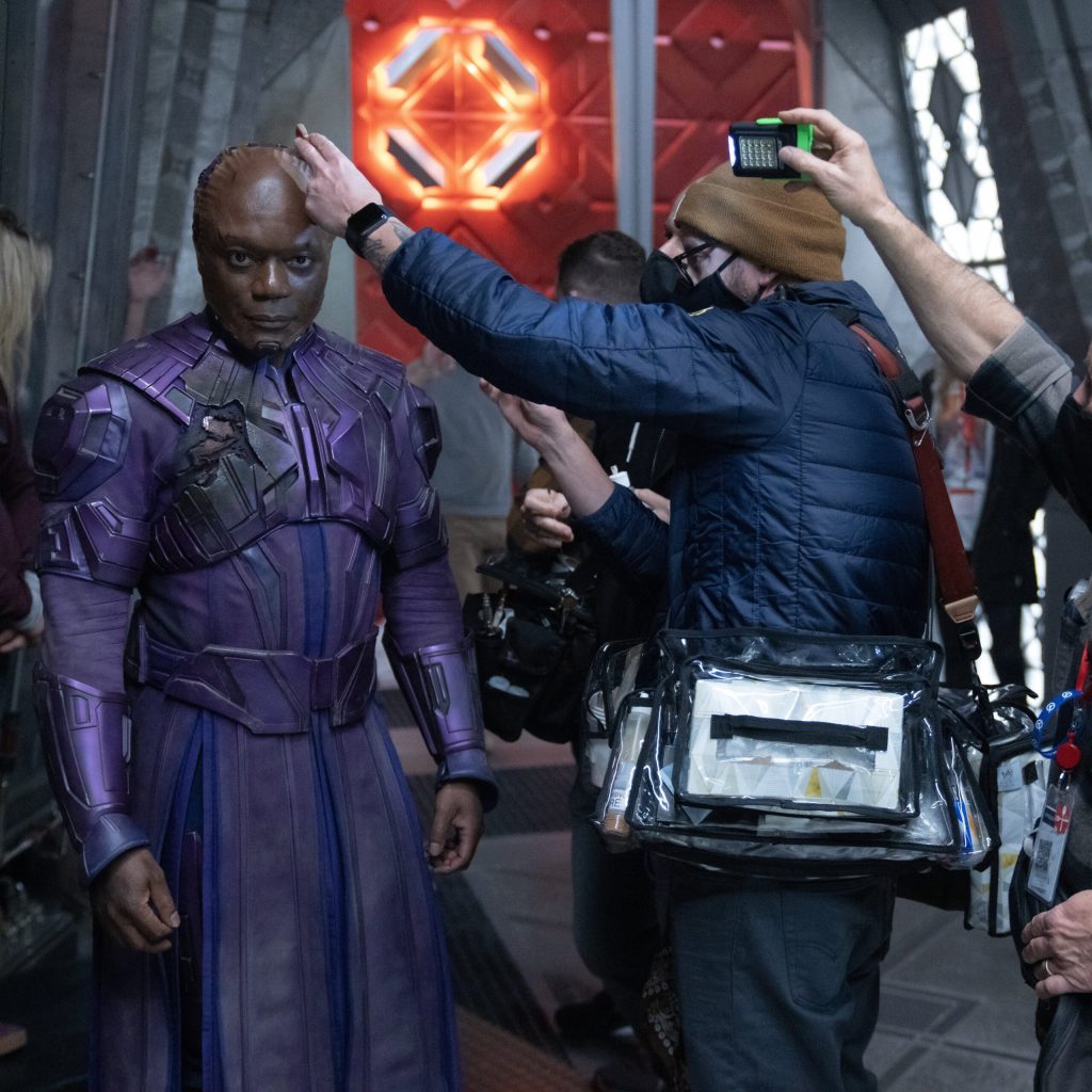 The hardest prosthetics look to achieve will likely surprise you. Of all the odd creatures they had to make, the High Evolutionary’s (played by Chukwudi Iwuji) makeup was the most challenging. “We really wanted his face to show through so you could really see his nuanced performance, so the makeup itself was in unconventional areas,” Dmitriew says.