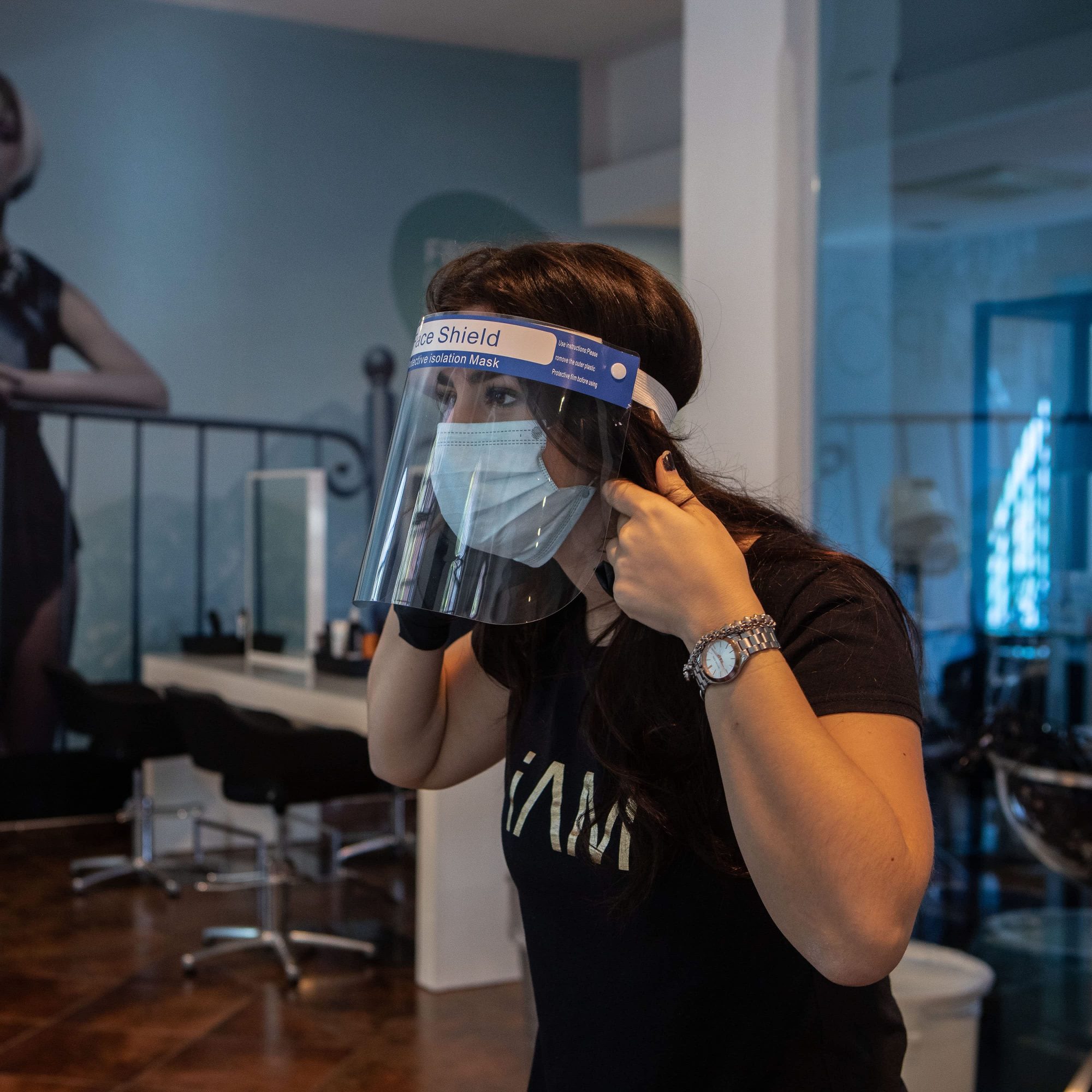 “At this time when many hairstylists are having to go back to work, it is my number one priority to protect myself and my clients,” she said. “Even if we aren’t fully certain of how the virus is transmitted, it is believed to be aerosolized droplets from breathing and speaking responsible for its spread, which can enter the body through the nose, mouth, or eyes. That’s why I’ve chosen to wear [them], with the sole purpose of protecting everyone around me. It’s a lot of responsibility, but until this country can effectively flatten the curve or develop a vaccine, these are the lengths I am willing to go to somehow make a living in these stressful times.”