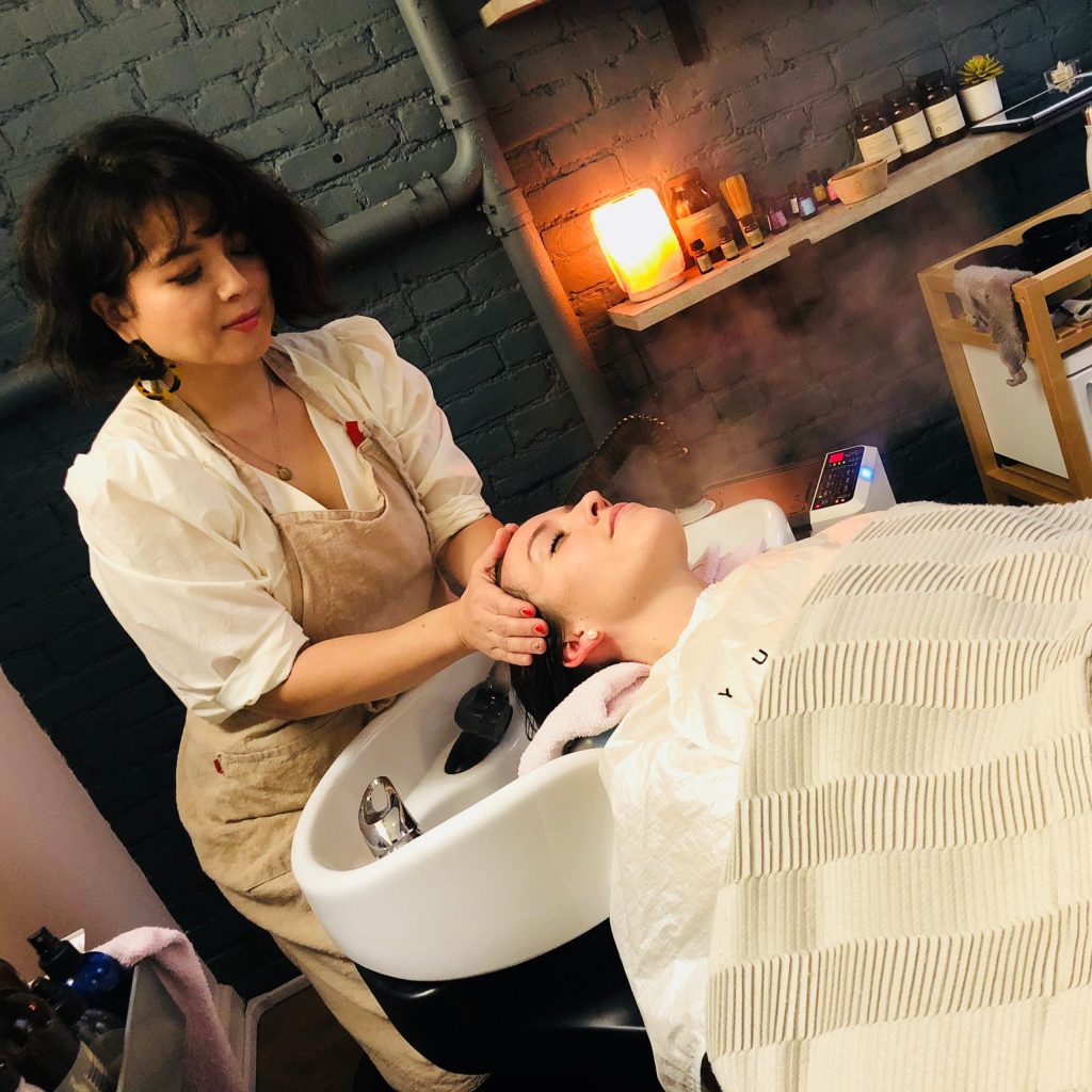 I’ve also needed help in the scalp department since the beginning of dry shampoo. My head, like my combination skin, is a walking contradiction – equal parts oily and dry, with flecks of dandruff sprinkled atop like cornflakes. Needless to say, I immediately booked an appointment with stylist Ritsuko Borges at Masa Kanai.
