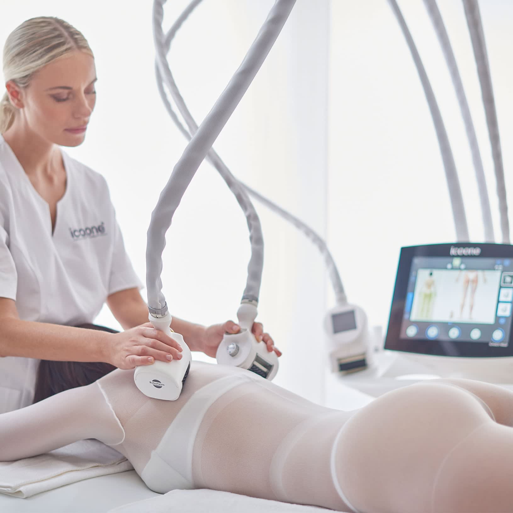 Body contouring. The mechanical rollers combined with suction perform lipolysis, where the fat is sucked out of the fat cells. “After just a few treatments, clients can feel and see a visible difference in their silhouette,” Kapica says. “Treatments can be performed daily, so if someone is going on a vacation or has a special event, daily Icoone treatments can quickly make a marked improvement in their appearance.”