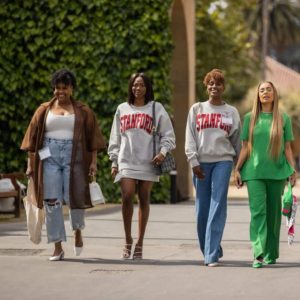 The cast’s hairstyles aren’t the only thing that’s accessible – the products Shelton reaches for behind the scenes are, too. Many of the brands used on set for Rae and Natasha Rothwell’s (Kelli) hair includes Eden BodyWorks, Alikay Naturals, Carol’s Daughter, Sienna Naturals, and Melanin Haircare, whereas Cantu Thermal Shield, and Got2B spray were used for Amanda Seales (Tiffany). Shelton also wanted to incorporate a lot of kinky hair, afro hair, rasta-free hair into each of the styles – to help embrace and create all the looks.