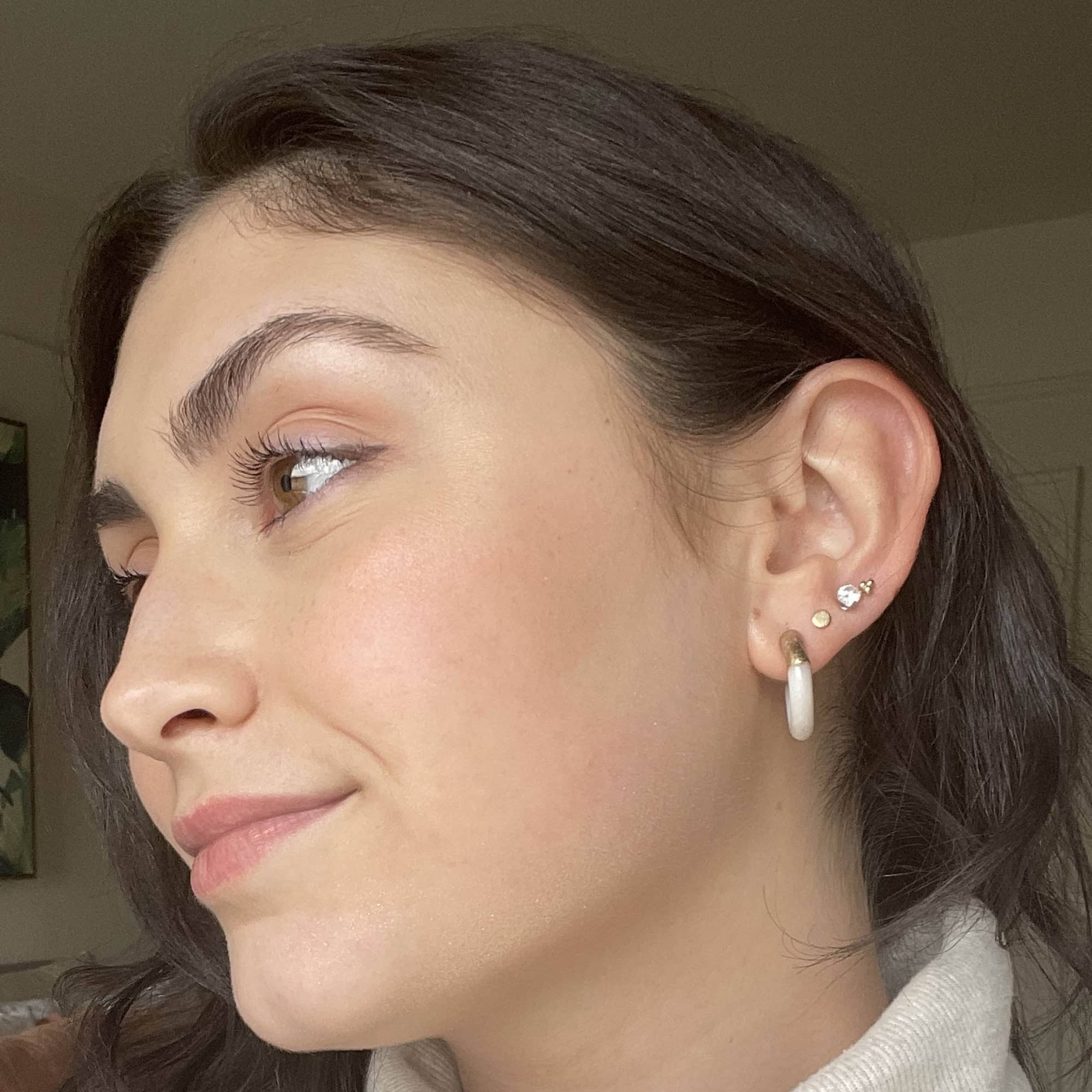 That’s when I finally felt like I had achieved my desired look. Though it’s still hard to see in photos, it was more prominent in the mirror when the light hit my skin just right — kind of like it did in Hadid’s photos. In hindsight, I wish I hadn’t used a highlighter with any shimmer to it, because I think it made it a little too distracting (you live and you learn), but all in all, it looked pretty good. A clear or jelly highlighter might work even better for this purpose.