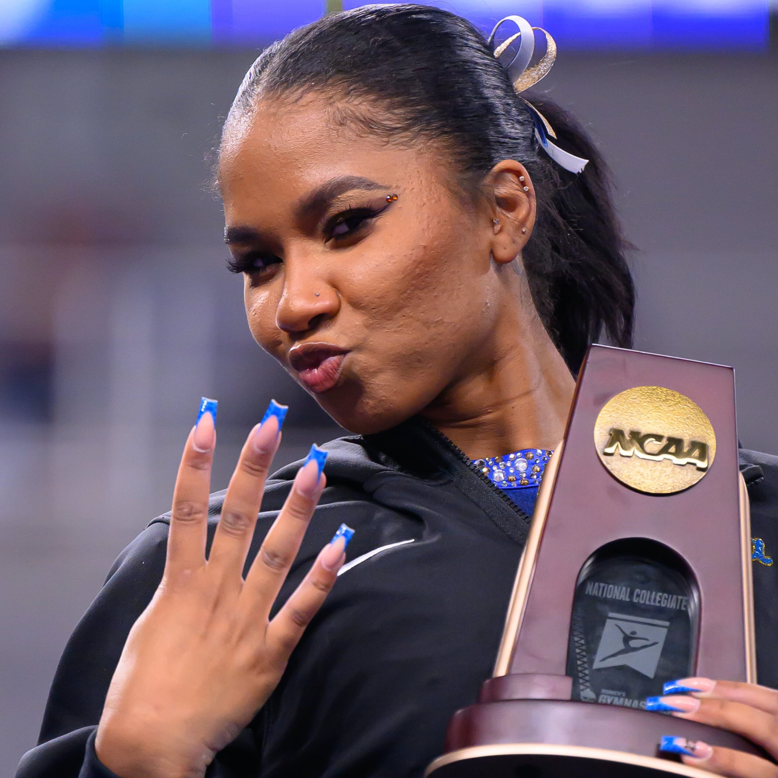 Jordan Chiles Wears an Electric-Blue French Manicure at the NCAA Semifinals