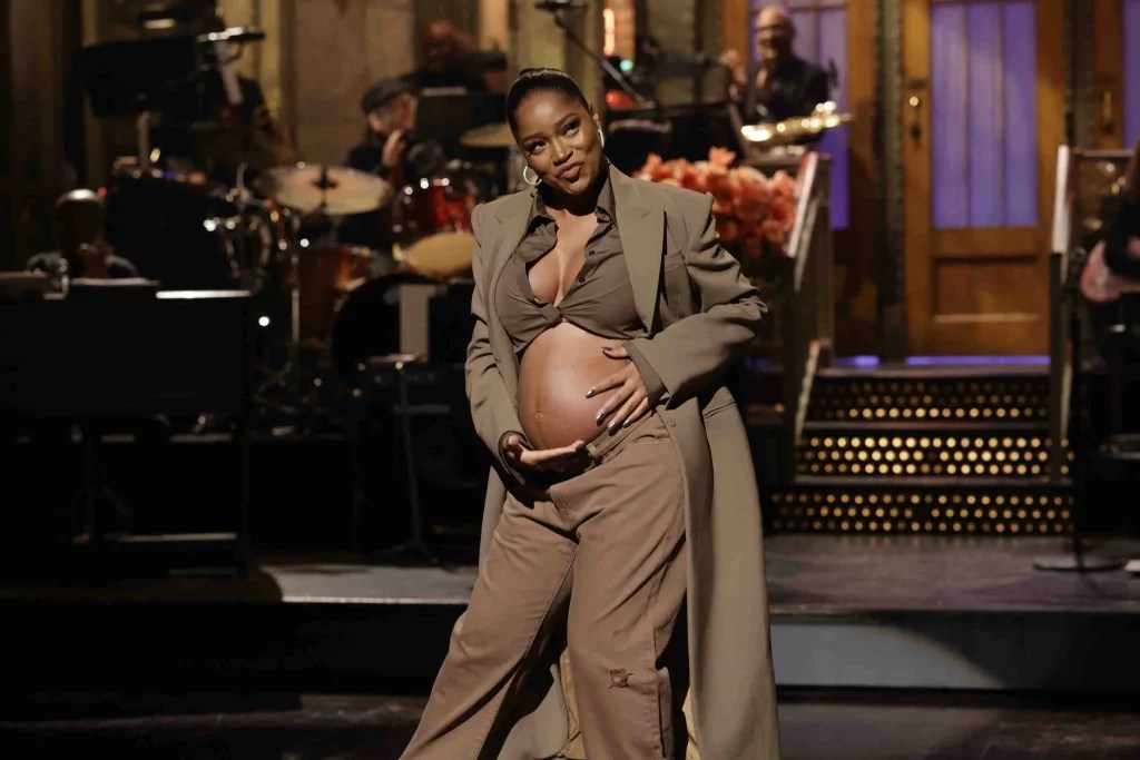 It was a very big weekend for Keke Palmer. The actor hosted “Saturday Night Live” on Dec. 4 and casually announced that she’s expecting a baby all in one sweep. Palmer dropped the news in her opening monologue for the show, dressed in an oversize brown suit and button-up shirt that showed off her growing belly. Also on full display were her chrome nails, which helped accentuate the news as she cradled her stomach.