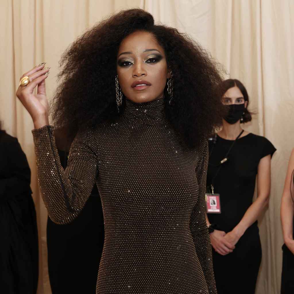 For her first-ever Met Gala appearance, Keke Palmer delivered on a divinely glamorous look that drew comparisons to Diana Ross. The actress attended the high-profile event wearing dreamy-side parted disco hair and a fanned-out smoky eye, which complemented her gold beaded Sergio Rossi dress quite nicely. With her eye shadow standing out, Palmer kept the rest of her makeup more understated yet glowy. It was a big night for Palmer: in addition to attending for the first time, she also hosted the Vogue livestream with Ilana Glazer. See photos of her beauty look ahead.