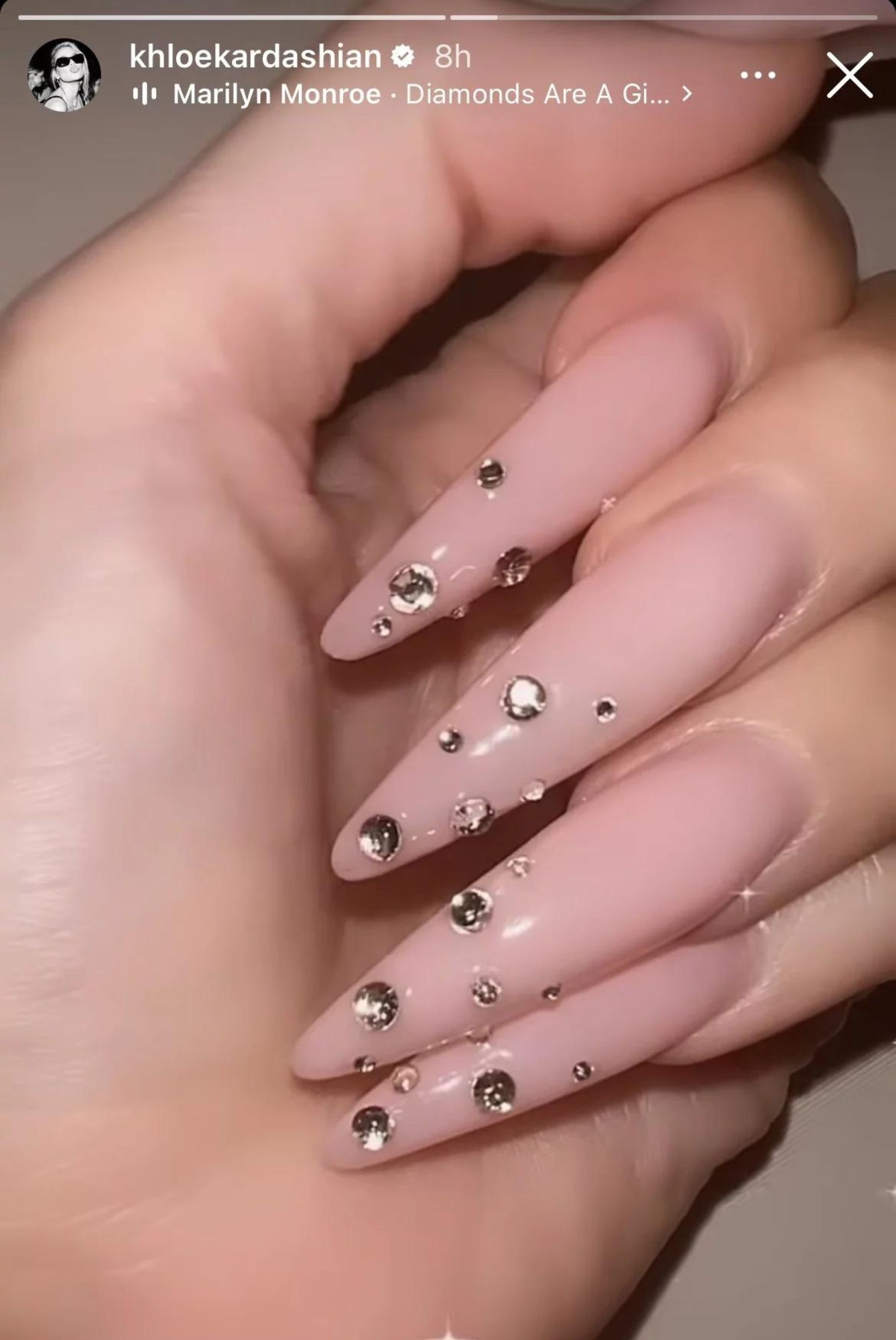 Khloé Kardashian Upgrades Her Supermodel Nails With Crystals