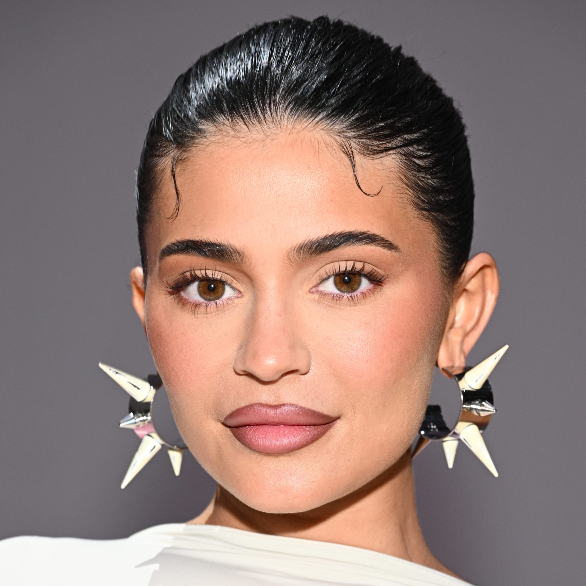 The new piercing sat at the center of Jenner’s lower lip with a thin silver hoop wrapping around her entire lip. Though likely a fake, the vertical labret piercing paired perfectly with her wet-hair look, vampy purple nails, and rosy-pink cheeks.