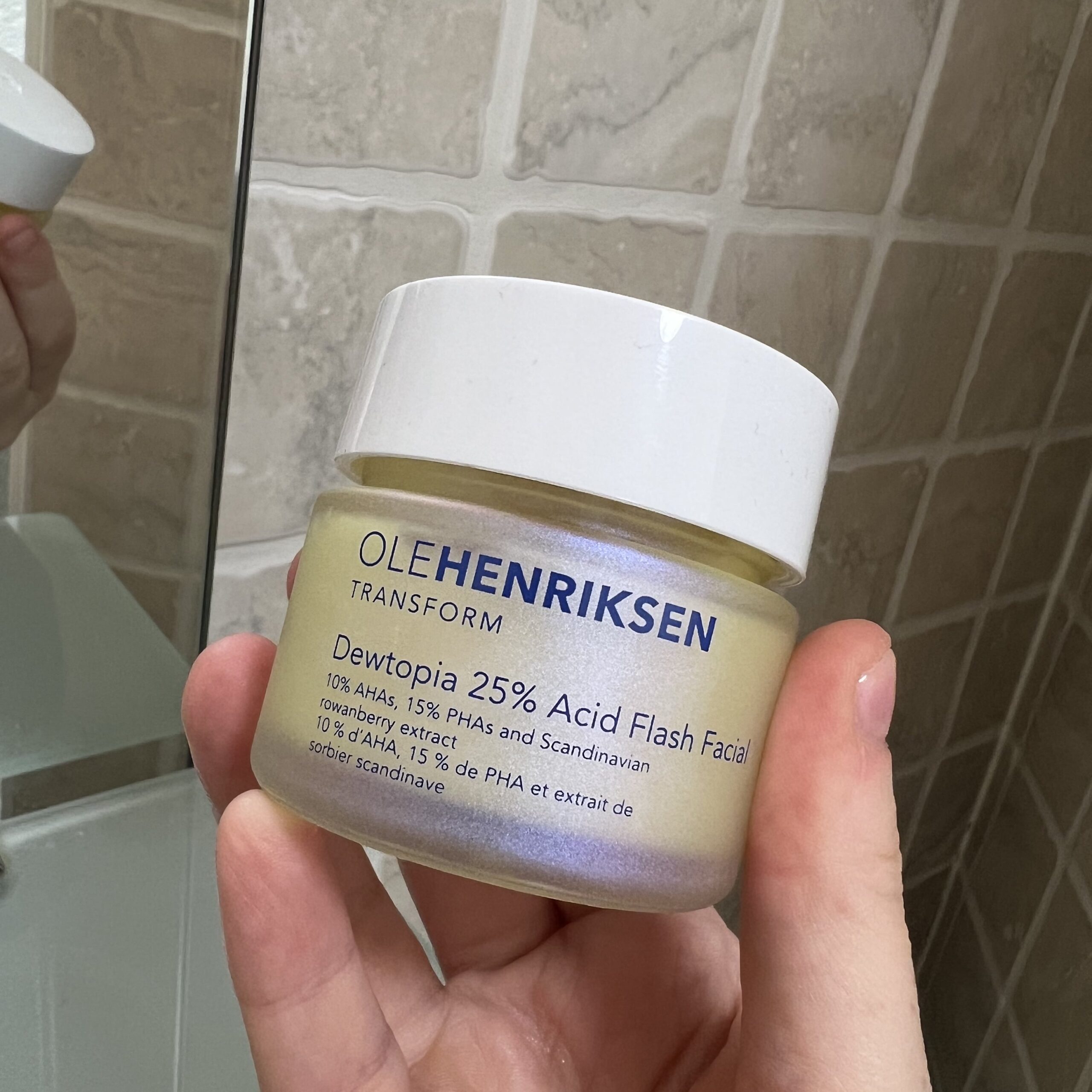 While I’d happily spend my days trying out the latest cryo facial or celebrity-favourite non-surgical treatment on offer, my hectic schedule says otherwise. In a post-pandemic world, I’ve turned to more DIY options for at-home facials which is why I was thrilled to see the brand-new OleHenriksen Dewtopia 25% Acid Flash Facial (£40) launching in August.