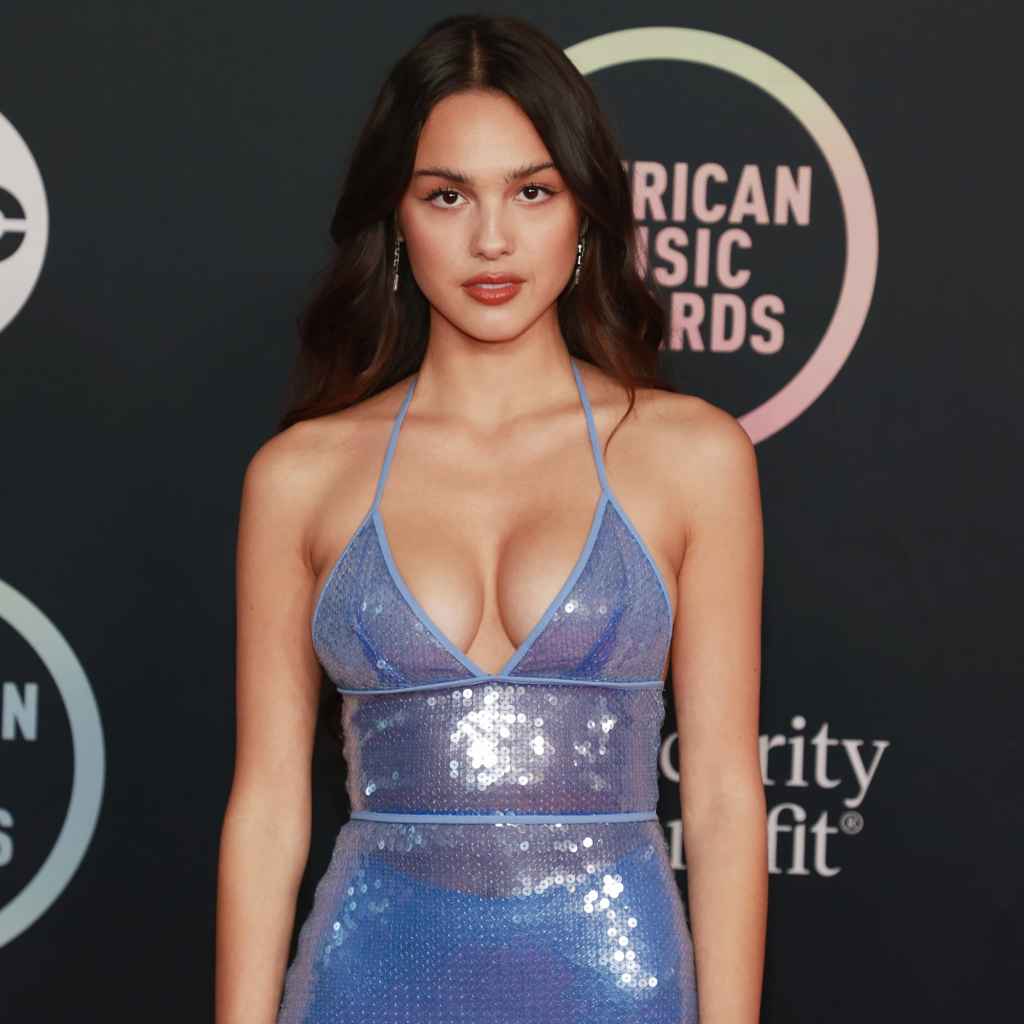 Tonight is the 2021 American Music Awards, and it’s also Olivia Rodrigo’s AMAs debut. The “Sour” singer is heading into the night with seven nominations, and judging by her red carpet look, she dressed to win. With some help from a stacked glam team of hairstylist Clayton Hawkins, makeup artist Molly Greenwald, and manicurist Brittney Boyce, Rodrigo looked amazing from head to toe with her extra-long mermaid waves and brushed up brows, but we couldn’t help but notice an extra fun detail hidden on her nails: Boyce created a negative space nail art design across all 10 of Rodrigo’s fingers. Each nail features a different abstract shape in black nail polish. (Not just any nail polish, of course – it’s from Machine Gun Kelly’s soon-to-launch nail polish brand UN/DN LAQR.)