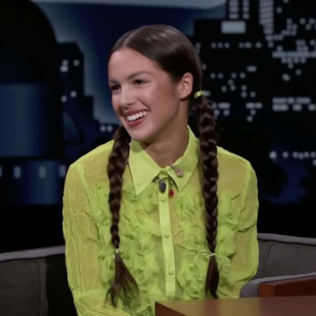 For a recent appearance on Jimmy Kimmel Live, the 18-year-old singer paired her neon green button-up with very neatly groomed pigtail braids tied with matching ribbons. The youthful style is one of many Y2K hairstyles Rodrigo, and her hairstylist, Clayton Hawkins, have tried: she wore butterfly clips and baby braids to perform at the 2021 MTV VMAs, and also bubble pigtails to celebrate the release of her Sour Prom concert film. See photos of her latest look ahead.