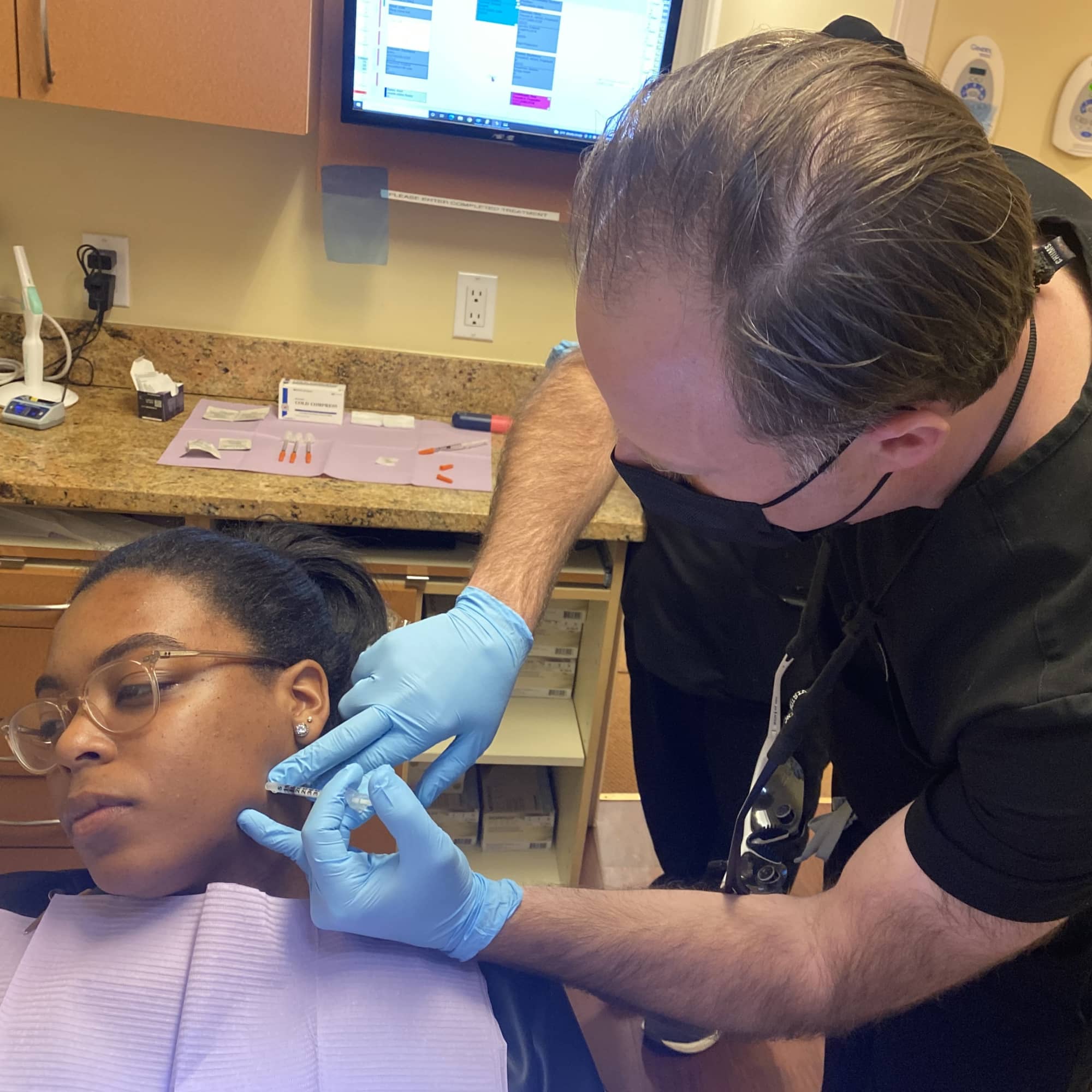 “Once we’ve examined the temporomandibular joint (or TMJ), we determine which muscles are causing the symptoms,” Dr. Arbeitman says. “Then, we typically do a ‘trigger-point injection,’ or an injection into the areas causing the most discomfort.”
