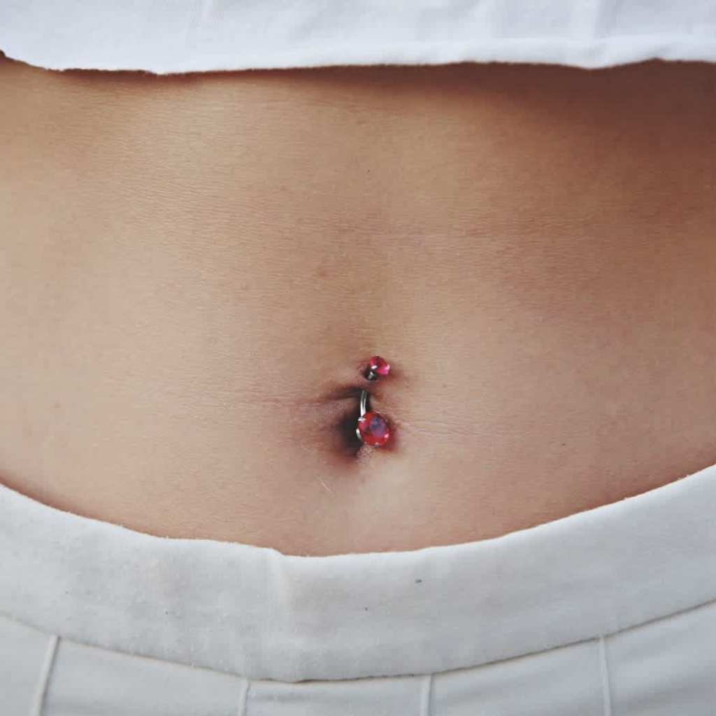 This piercing’s healing really depends on the type of jewelry you choose. In general, navel piercings heal within nine to 12 months, but choosing jewelry that doesn’t work with your anatomy can increase healing time. As Gottschalk said, “A lot of people aren’t really suited for a traditional navel piercing, and there are ways to work around that.” Alternatives to the traditional navel include a “floating navel” piercing, which is done using jewelry with a flat disk on the bottom and a gem on top, but ask your piercer for advice before making your final decision.