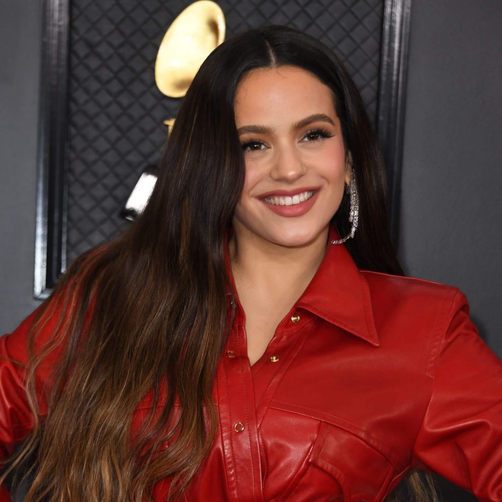 Rosalía went for full sultry-glam with curled hair and a bold red lip.