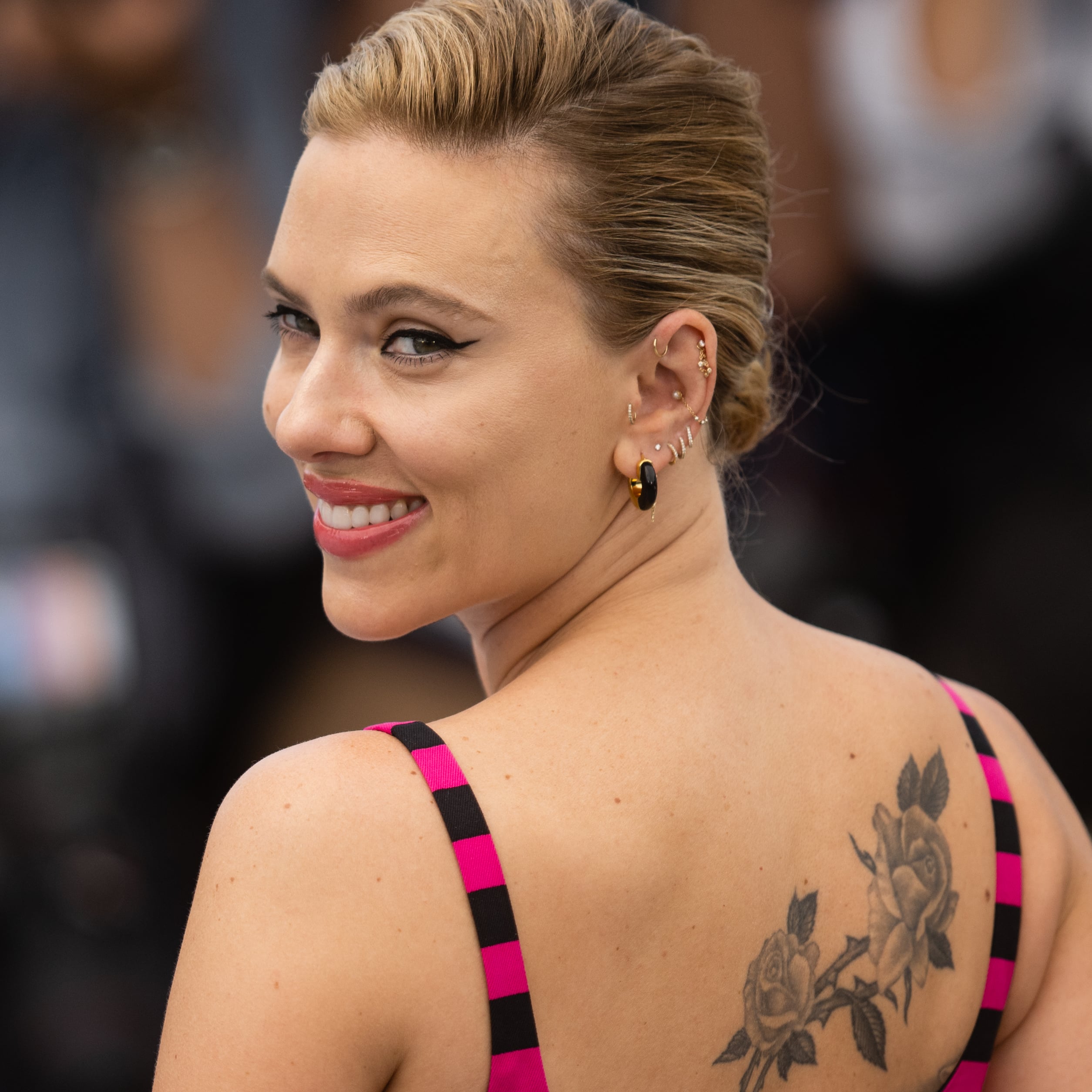 For the Cannes Film Festival in 2023, Johansson wore a low-cut dress that showed off her floral back tattoo. Her design, which appears to be roses on a vine, could be a tribute to her daughter, Rose. The first official glimpse we got of the new ink was in 2017.