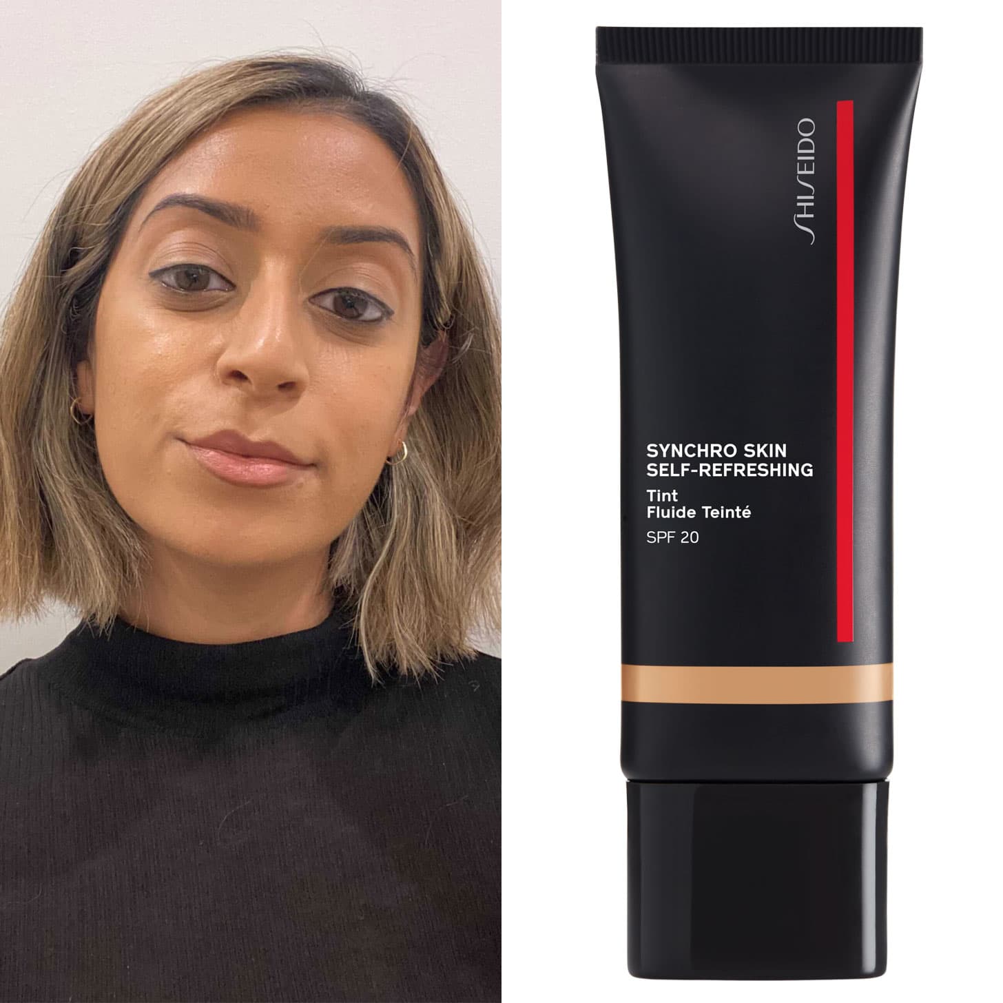 Speaking of colour, the Synchro Skin tint comes in 12 shades, which the brand developed to cover the same skin tone range as the 30 shades in the brand’s Synchro Skin foundation line. As the skin tint coverage is more sheer, each shade of the tint spans two or three shades of the Synchro Skin foundations. When we’re talking about shade though, not only is it important to have an inclusive range, but it’s also important that the shades in the range work well for medium and darker skin tones. This is where the PS team was nicely surprised. “The Synchro Skin tint is probably one of the only tints I’ve ever tried that didn’t go orange on me,” Assistant Editor Navi Ahluwalia said (she wears shade 335). “It’s great for South Asian skin.”