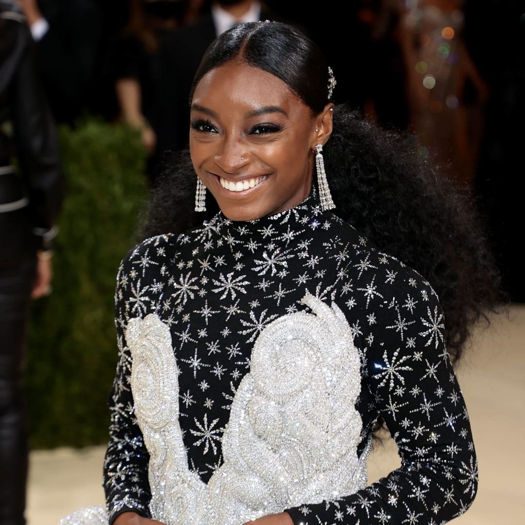 With the theme of the 2021 Met Gala being “In America: A Lexicon of Fashion,” it only makes sense that Team USA Olympic gold medalist Simone Biles is in attendance and shining like a star on the red carpet. And we don’t just mean figuratively – the gymnast came dressed in an 88-pound, crystal-embellished dress with starry detailing on the sleeves and pants that she carried through to her hairstyle.