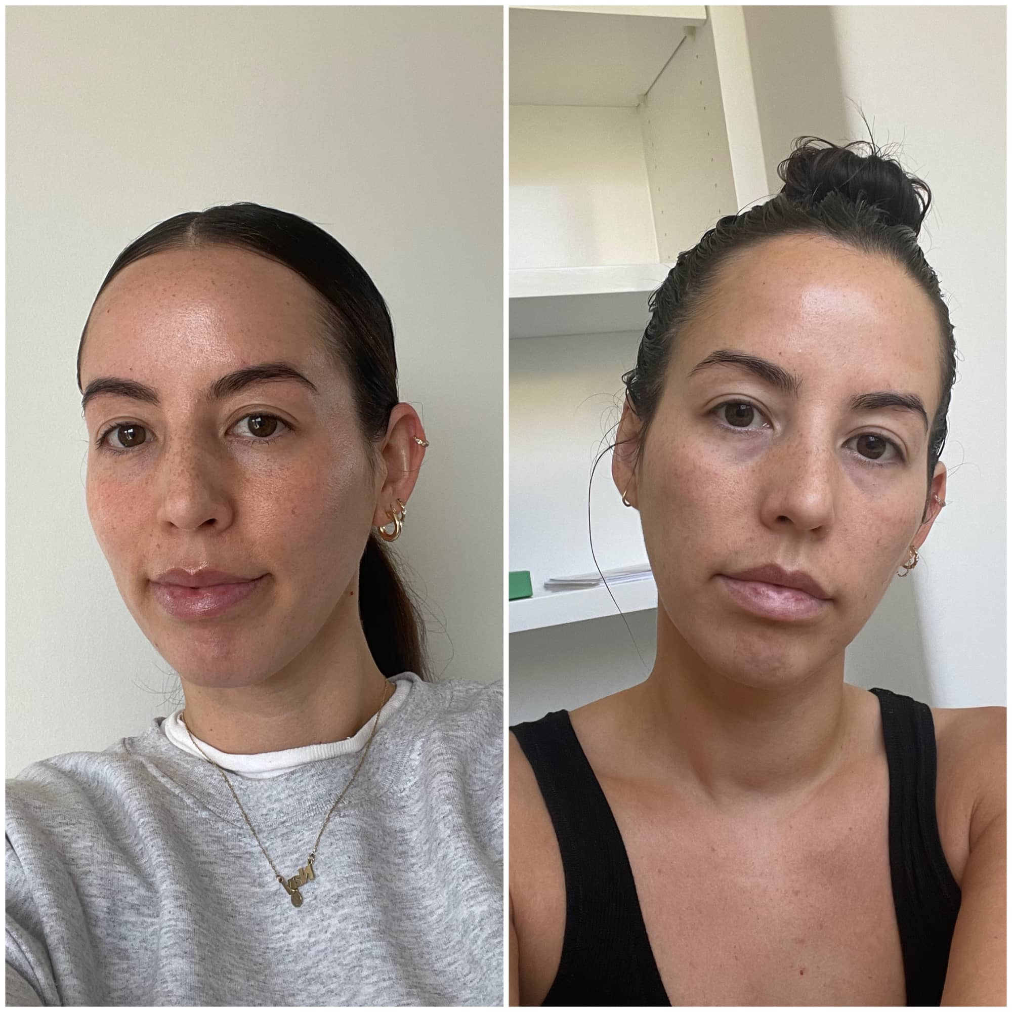 By day three, things had taken a sharp turn and I was feeling utterly miserable. I needed to leave the house the day before, so I used my typical SPF before heading out to run errands. When it came time to wash my face at night, it didn’t feel like water alone would cut it. My skin felt like it had a gross layer on top of it, and I went to bed severely missing my cleanser.