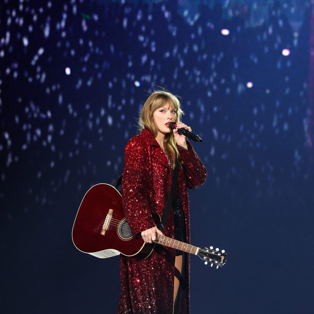 It’s a nail trend the singer has worn before. At the American Music Awards back in November 2022, Swift wore a gold version of the manicure, but this time, her nails were much edgier. For the occasion, Swift kept the shape square and short with no extensions. To match her stunning Alexandre Vauthier catsuit, she opted for a black polish that had a duo-chrome finish – in certain lighting, it looked blue and in others, green. The manicure was finished with a glossy top coat to provide even more shine.