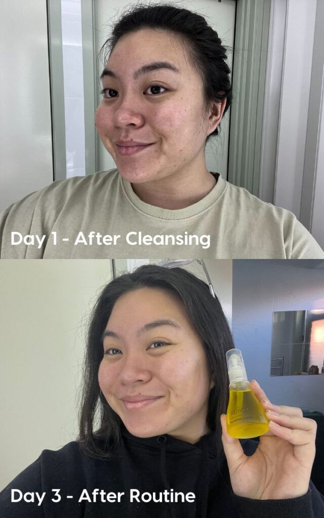 Topping off the process with this Jojoba Company serum locked in the oil beneath. And because of the sheer amount of hydration sources on my face each morning and night, I didn’t feel the need to add a moisturiser on top.