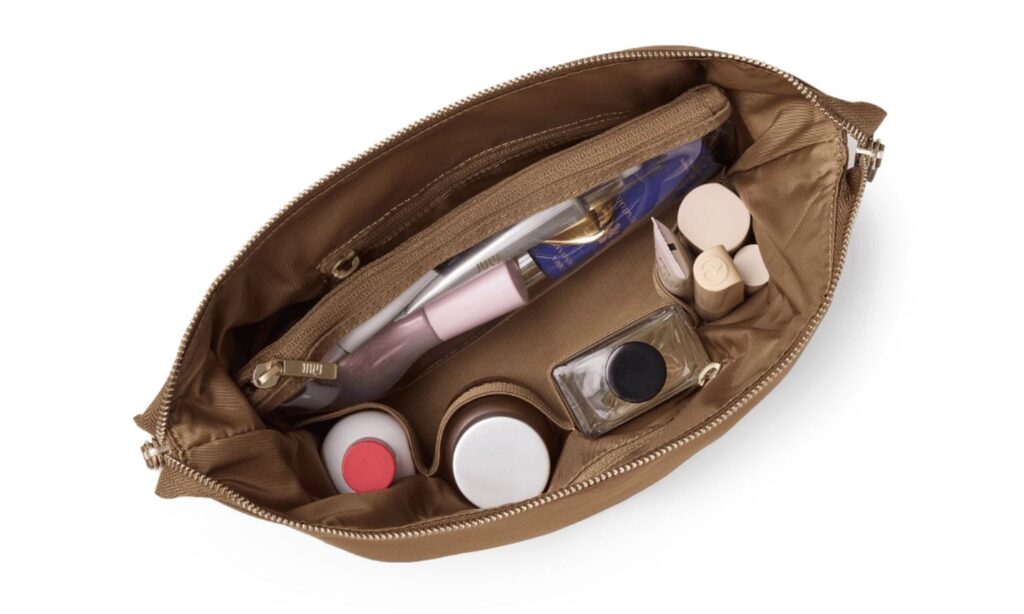 This travel cosmetic bag from Peta and Jain ($59.95) is a combination of functional and stylish. Inside you’ll two spacious compartments, a handy hook and a mini pouch to fit all of your beauty routine inside. You’d never suspect it’s a travel makeup bag, so if you need to switch up your accessories on the fly, it can even double as a handbag.