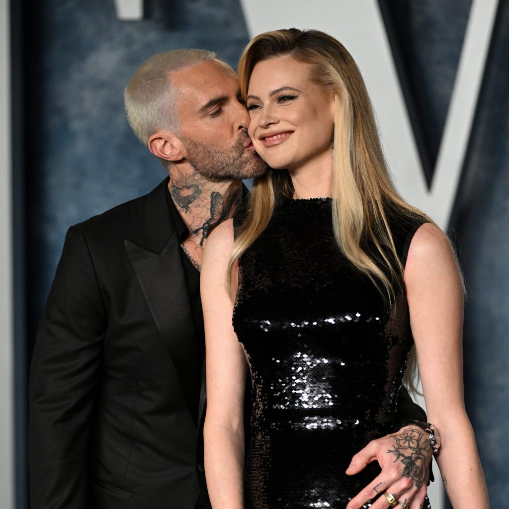Adam Levine and Behati Prinsloo are returning to the spotlight six months after the Maroon 5 frontman’s cheating scandal. The couple, who are now parents to three kids, made a loved-up appearance at the Vanity Fair Oscars party on March 12. With matching blond hair (Levine recently debuted a platinum buzz cut) the pair embraced and shared kisses for the cameras on the red carpet. The model stunned in a form-fitting sequin gown, while the singer coordinated in a suit with a casual V-neck tee underneath.