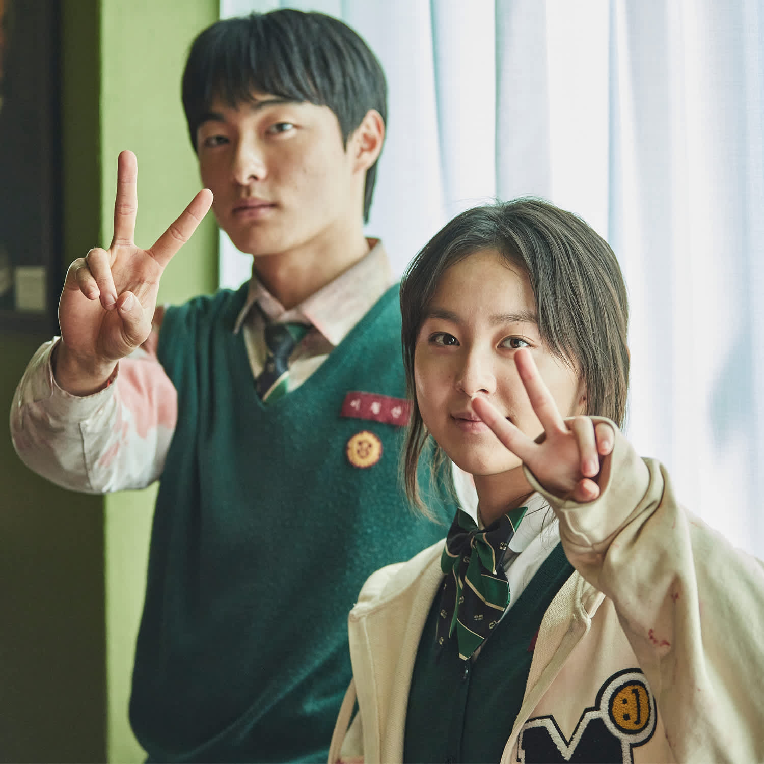 The main cast feature Park Ji-hu (Nam On-jo), Yoon Chan-young (Lee Cheong-san), Cho Yi-hyun (Choi Nam-ra), Park Solomon (Lee Su-hyeok), Yoo In-soo (Yoon Gwi-nam), Lee You-mi (Lee Na-yeon), Lim Jae-hyeok (Yang Dae-su), and Ha Seung-ri (Jang Ha-ri) as a group of students at Hyosan High School in South Korea who find themselves trapped in the center of a zombie virus outbreak. On screen, On-jo, Cheong-san, Nam-ra, and Su-hyeok are caught in a love triangle square, but off screen, they’re basically best friends. And that photo of Yoo – aka the most terrifying bully you could ever imagine on screen – and Cho, the class president, is a welcome reminder that even heroes and villains can get along when the cameras aren’t rolling.
