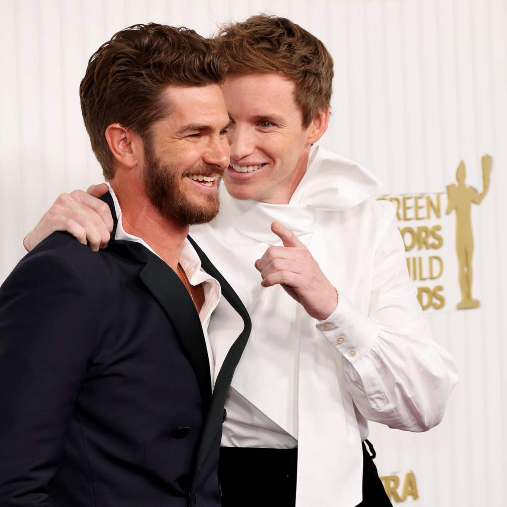 Andrew Garfield and Eddie Redmayne had a hard time pulling it together at the 2023 SAG Awards. The longtime friends reunited at the award show in Los Angeles on Feb. 26, laughing while posing for photos on the red carpet. At one point, Redmayne cracked Garfield up as he appeared to make some sort of cheeky remark while pointing his finger.