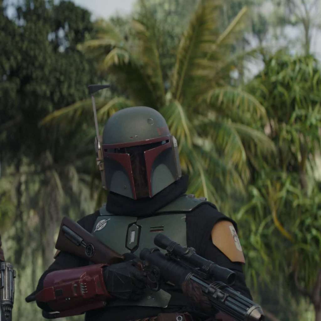 For viewers who keep watching after the credits sequence rolls by, a bonus scene brings us back to Tatooine. Not only is the desert planet the home of Luke Skywalker, but it also houses Jabba the Hutt’s Palace, which is pretty significant for one of our Mandalorian heroes. The Palace guards are taken out one by one by a mysterious figure before we see Fennec and Boba enter Jabba’s throne room to take out all the goons inside. Residing on the throne is Bib Fortuna (with Matthew Wood taking over Michael Carter’s role from Return of the Jedi), who’s been ruling in Jabba’s place. Bib only has enough time to mention that he heard rumors that the bounty hunter was still alive before Boba shoots him dead and takes his place on the throne with Fennec by his side. Talk about an act of swift revenge!