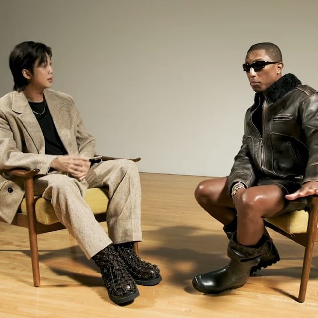 RM is also working on a solo album, which he told Pharrell he’s 90 percent done recording (it’s rumored to be dropping sometime in November). Before their interview wrapped up, Pharrell also spoke another collab into existence. “I’m just going to put this out there. You said you’re 90 percent done with your solo album. But if within that last 10 percent, if you need – you don’t need me, but I mean . . .  If you want to do something, we can actually do it . . . and you tell me what you want. Up-tempo? We go up-tempo.”