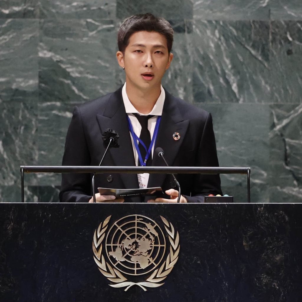 It’s been (another) big month for BTS. Shortly after picking up some wins at the MTV Video Music Awards, the group appeared at the 76th session of the United Nations General Assembly in New York City on Sept. 20 as special envoys for South Korea. Jin, Jimin, J-Hope, Jungkook, RM, Suga, and V joined President Moon Jae-in in delivering remarks about the ongoing coronavirus pandemic, climate change, and how young people today are grappling with both.