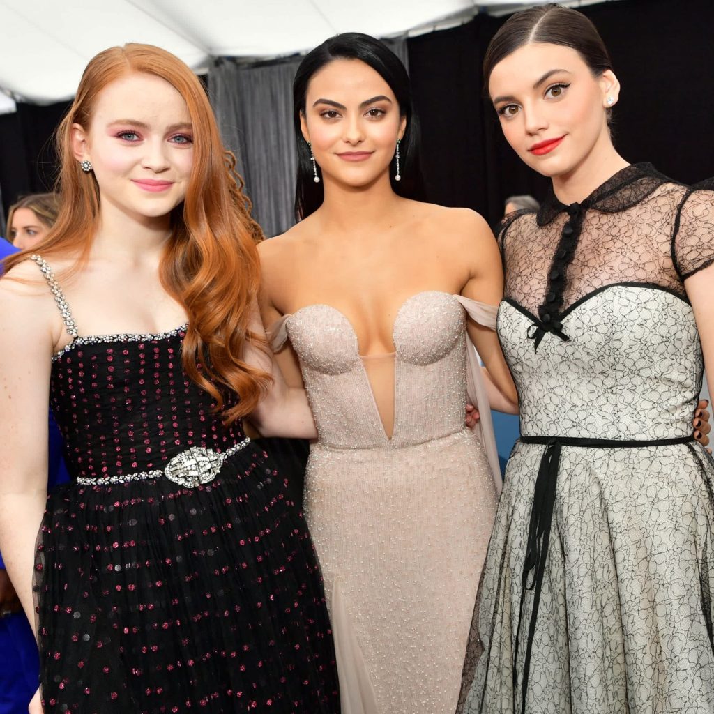 Lili Reinhart and Camila Mendes took a break from solving crimes and stirring up drama on Riverdale to attend the SAG Awards on Sunday. The actresses looked completely stunning as they hit the red carpet at the event. While Lili sported a flowing black and white gown for the show, Camila rocked a strapless champagne dress as she posed for photographers. At one point, Camila snapped a quick selfie with Stranger Things actress Francesca Reale before posing for a group photo with Sadie Sink. Honestly, we need a Riverdale and Stranger Things crossover after this. See more photos of the Riverdale ladies’ night out ahead.