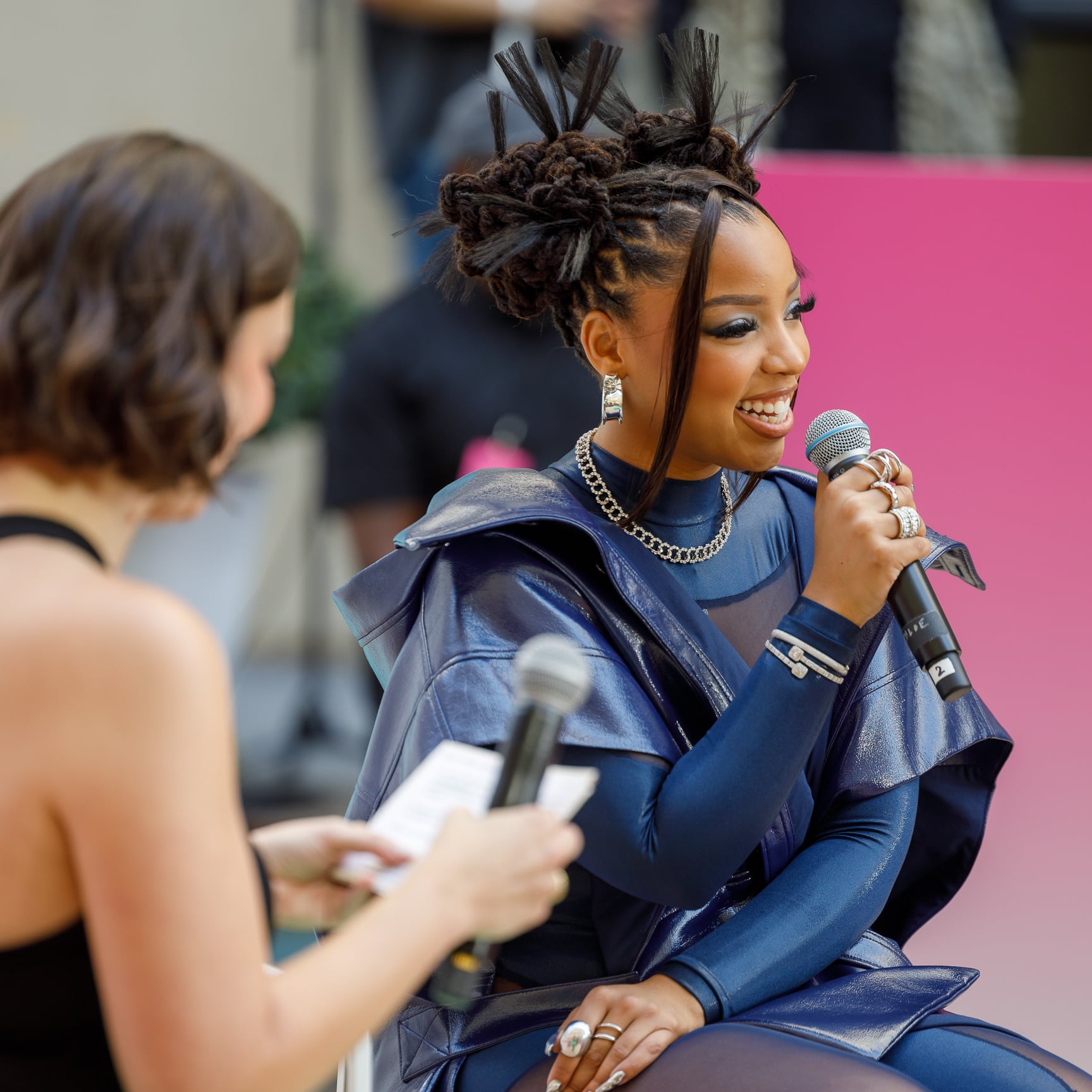 Any fan of Chloë knows the singer and actress loves fashion and beauty, so it was fitting that when she took the stage, her futuristic outfit was complemented by spiky, Y2K-inspired buns, chunky silver jewelry, and silver chrome nails. The look was met with enthusiastic applause, but when Chloë started her three-song set with her debut solo single “Have Mercy,” those hollers just grew louder.
