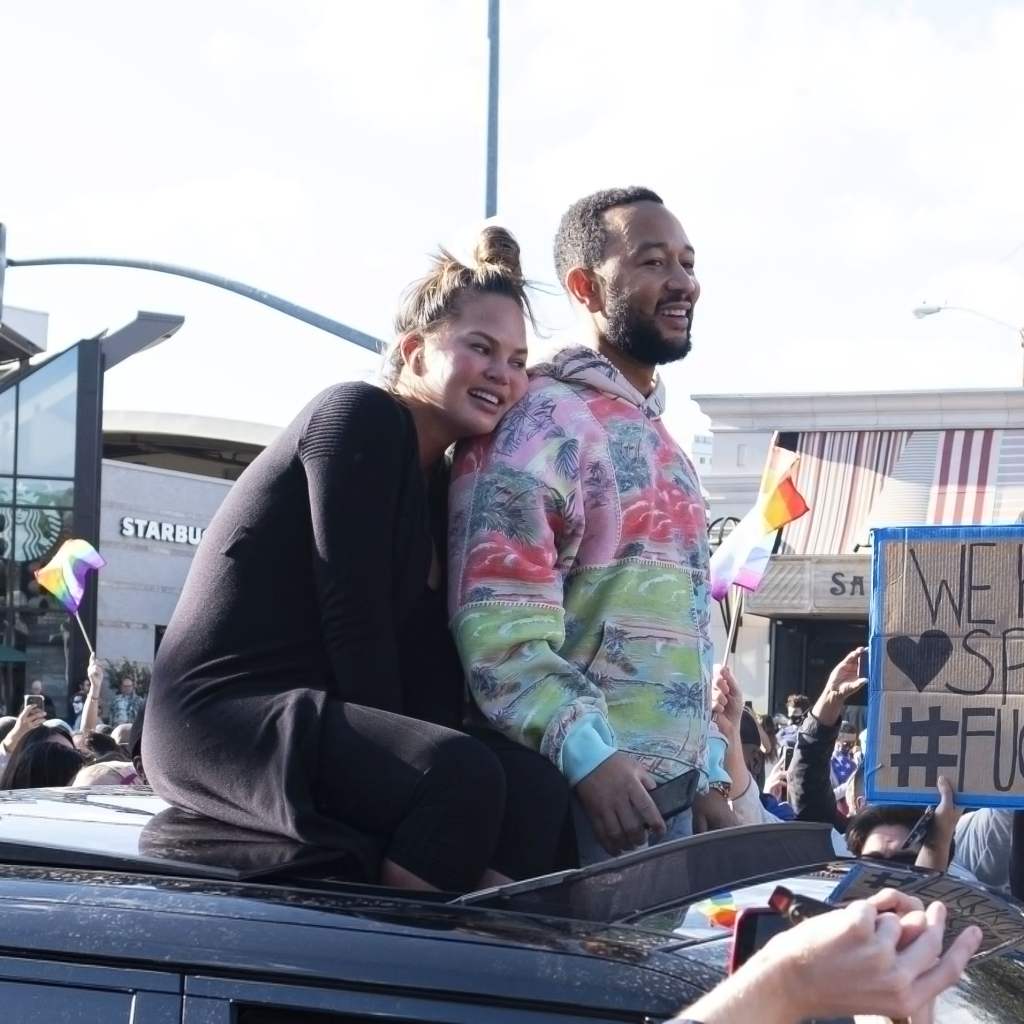 Surprised participants spotted Chrissy and John cheering from the sunroof of their car and caught the moment on camera. “Everyone is so beautiful and so happy I’m crying,” Chrissy tweeted in response to the celebration. Chrissy and John stayed socially distanced from the crowd during the ongoing pandemic, but seemed overjoyed to participate in the festivities.