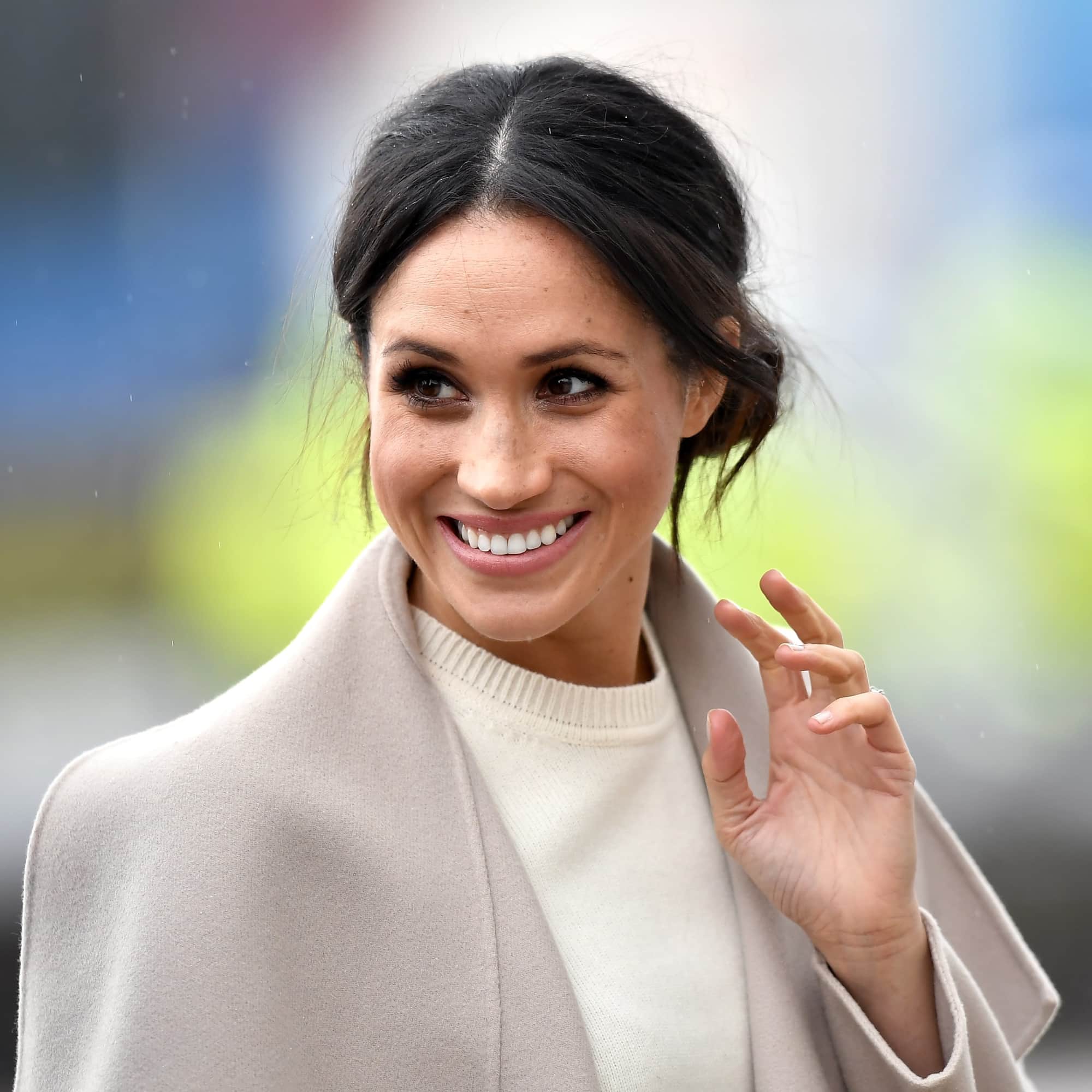 All you need is a cream turtleneck, a chic gray coat, and a windswept bun to take on Meghan Markle. Add in a cardboard cutout of Prince Harry’s face for a dash of fun.