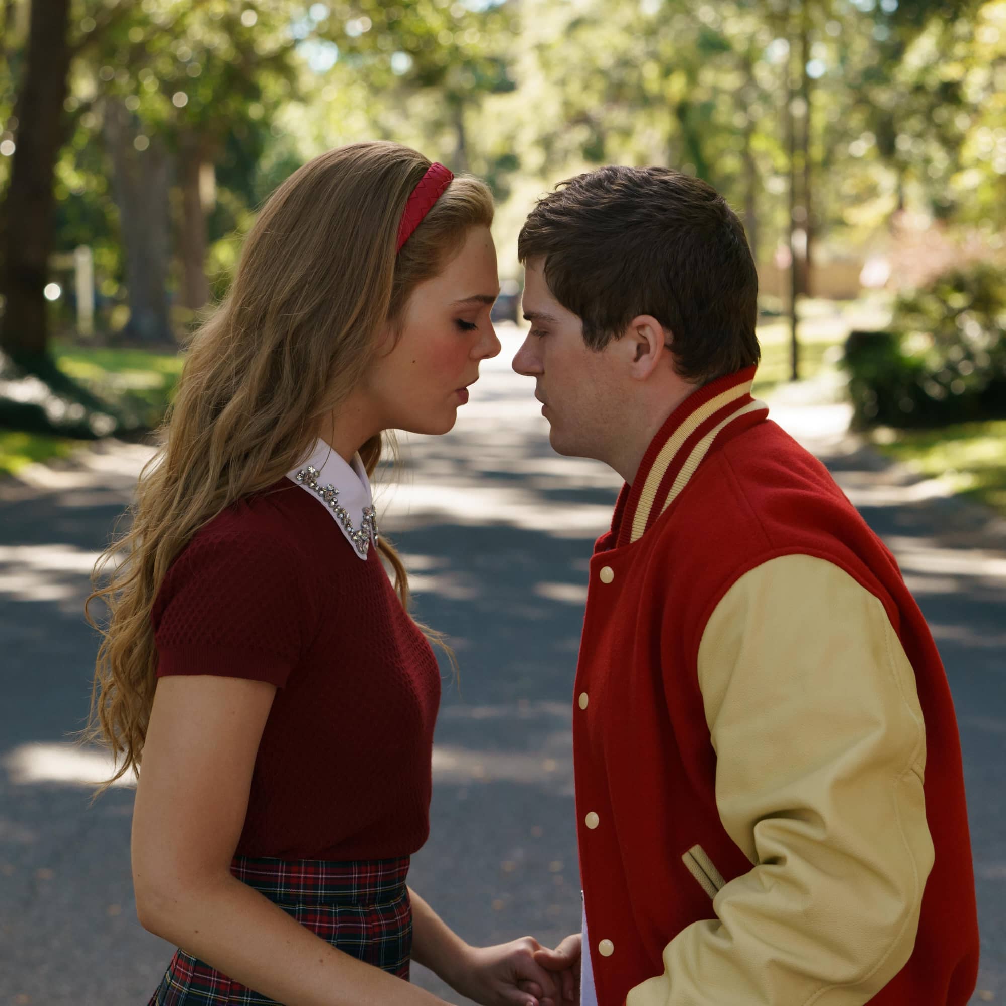 In episode four of “The Girl From Plainville,” Michelle Carter (Elle Fanning) is reeling from news that she’s been indicted on charges of involuntary manslaughter in the death of her boyfriend Conrad Roy (Colton Ryan). She walks the neighbourhood, listening to the “Glee” cast album in her headphones, when she imagines that Conrad is there, dressed in a varsity jacket just like Finn on “Glee.” Suddenly, her clothes change into a very Rachel Berry-like outfit. They turn the song, “I Can’t Fight This Feeling,” into a duet, singing and dancing together in the middle of the street. When the song ends, Conrad disappears and Michelle snaps back to reality.