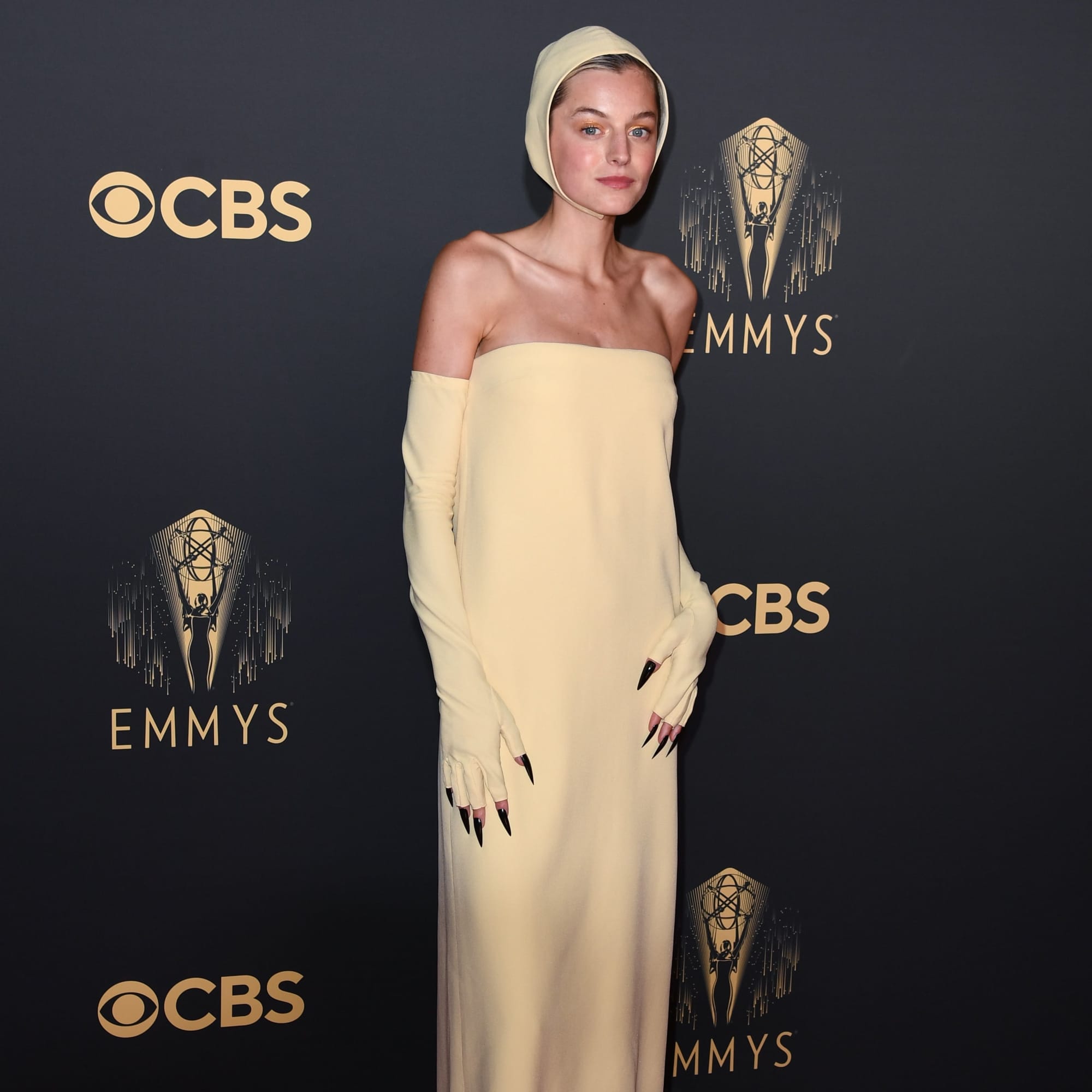 Emma Corrin looked like an actual ray of sunshine at the 2021 Emmy Awards. The star of The Crown wore a gorgeous custom yellow Miu Miu gown with a matching bonnet and some seriously impressive stiletto nails that poked through the sleeves. During red carpet interviews, Emma said that the entire look has been in the works for three months, and while it’s a new color for them, it is absolutely stunning.