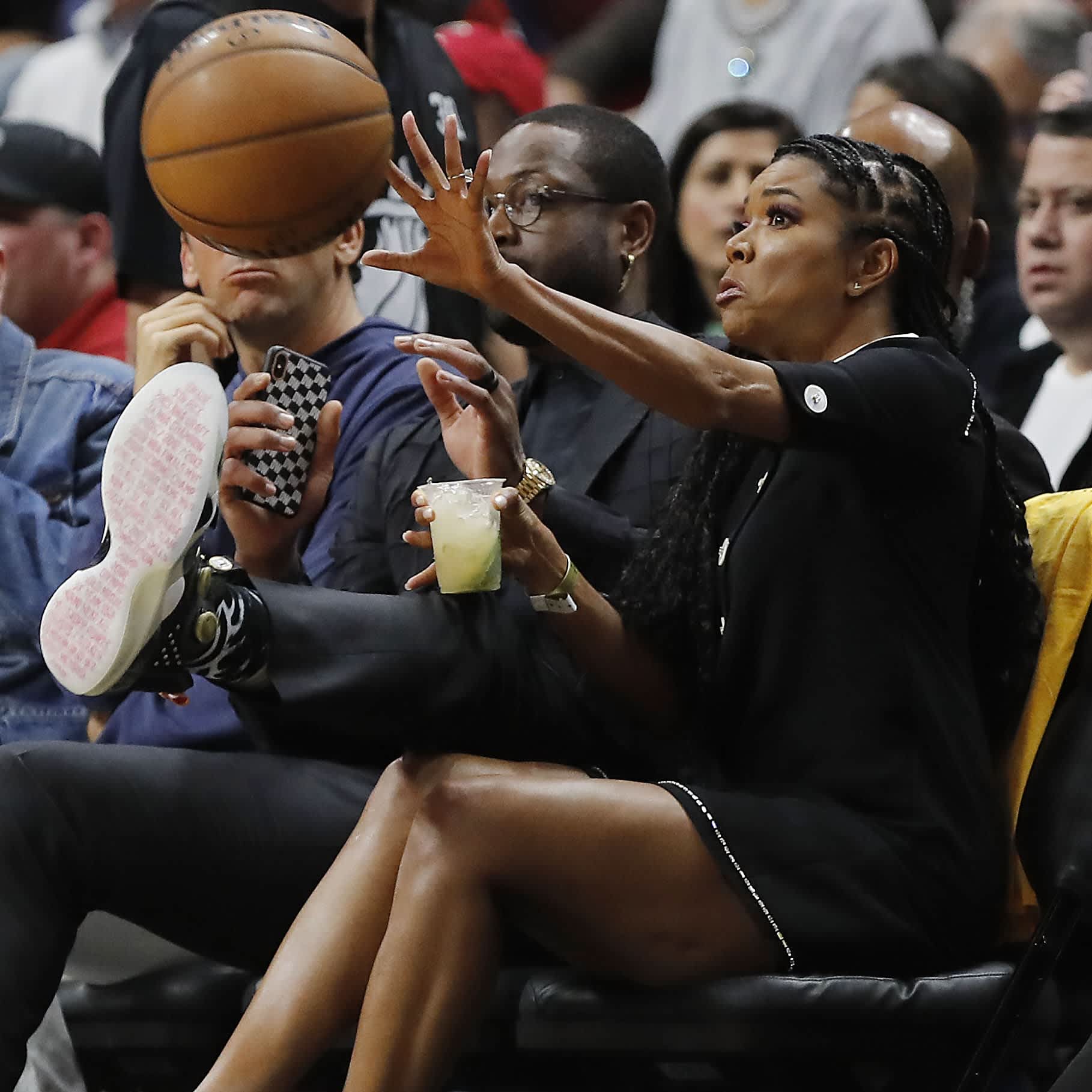 Watch Out! Gabrielle Union and Dwyane Wade Almost Get Hit With a Basketball at NBA Game