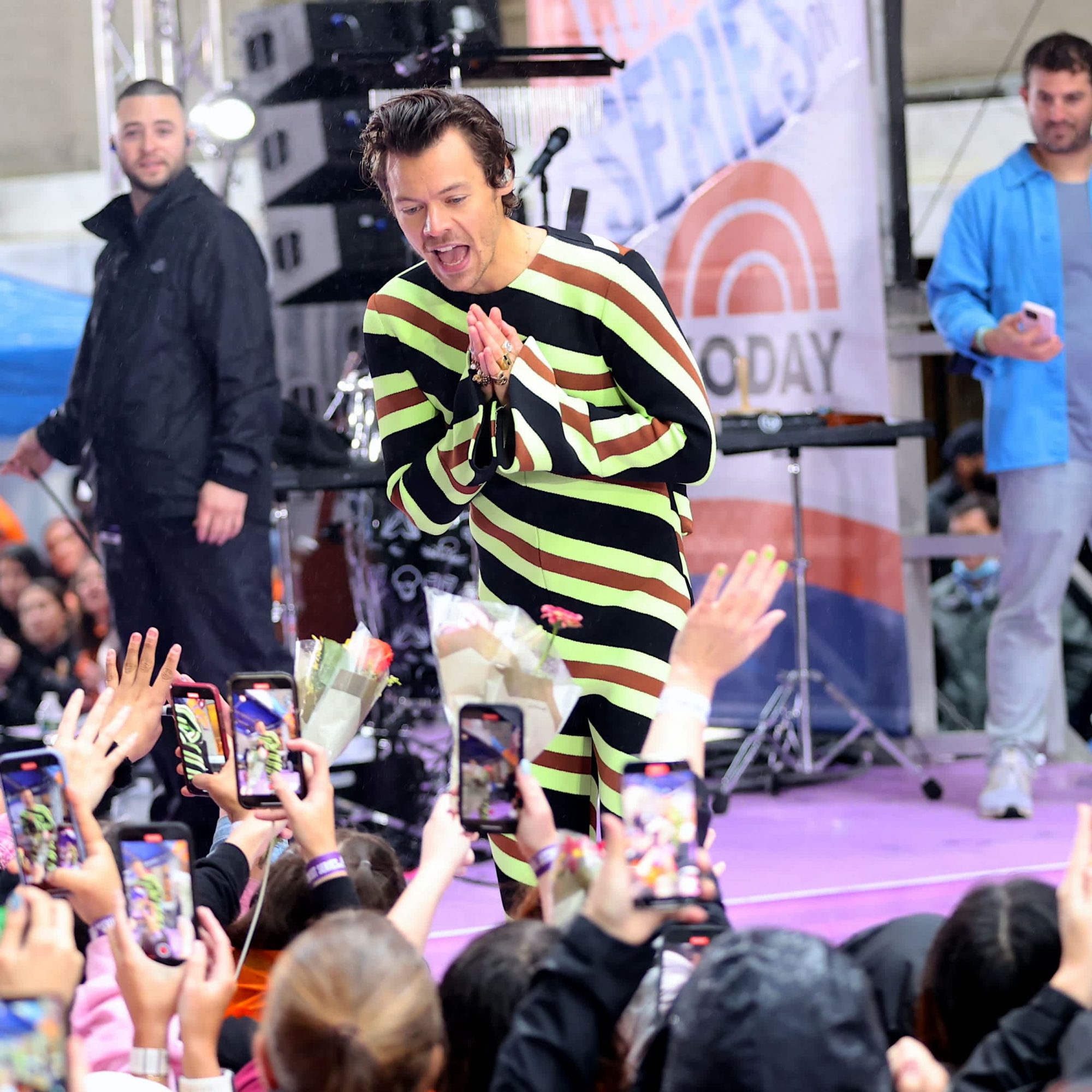 Fans often throw things at Styles while he’s performing, including sunglasses, cowboy hats, presents, and, frequently, LGBTQ+ pride flags. A chicken nugget does seem to be a first, though. The stage for Styles’s 2022 tour is set up in the round, which means a larger than normal group of fans is within throwing distance of the stage.