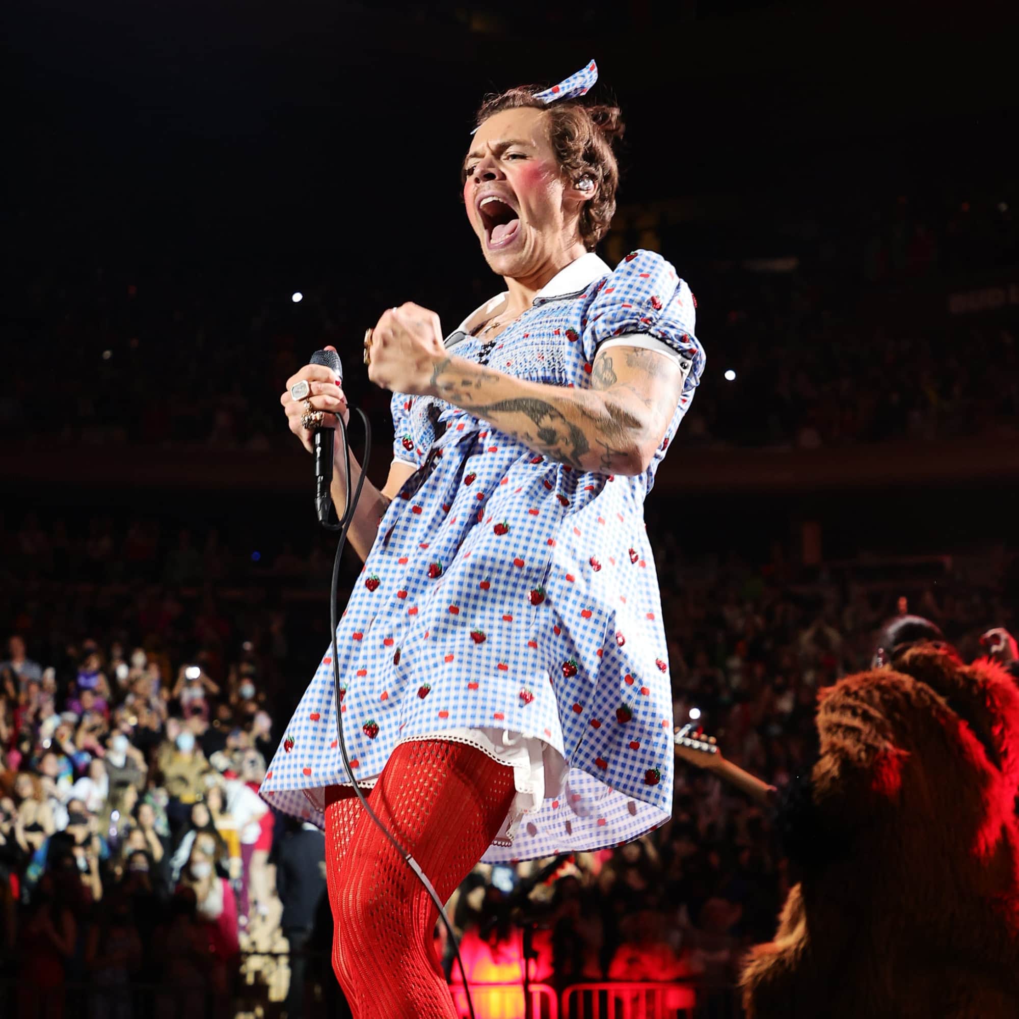 My No.1 regret in life is not splurging on tickets for one of Harry Styles’s Harryween concerts. The singer spent Halloween weekend performing back-to-back Love on Tour shows at Madison Square Garden in New York City, and goodness gracious, did he pull out all the stops for both gigs. On night one, Styles put his sheer lack of toxic masculinity on full display while dressing as Dorothy from The Wizard of Oz – glittery ruby slippers, short blue dress, hair bow, and all. After singing hits from his usual setlist, including “Golden,” “Watermelon Sugar,” and “Kiwi,” he went off script and slipped in a dreamy cover of “Somewhere Over the Rainbow” to really make fans swoon.