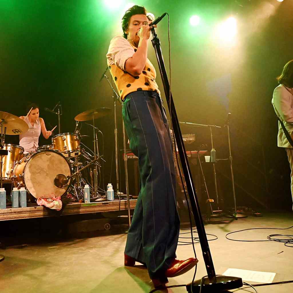 Harry Styles brought his talent, his charming smile, and his impeccable sense of style to New York City on Friday. Following the release of his music video for “Falling,” the 26-year-old singer – along with SiriusXM and Pandora – held a secret concert at the Music Hall of Williamsburg, where fans gathered to swoon. He crooned a handful of tunes from his latest album, Fine Line, including “Adore You” and “Watermelon Sugar,” as well as One Direction’s 2011 hit “What Makes You Beautiful.” He even got the crowd to sing “Happy Birthday” to someone in the audience.